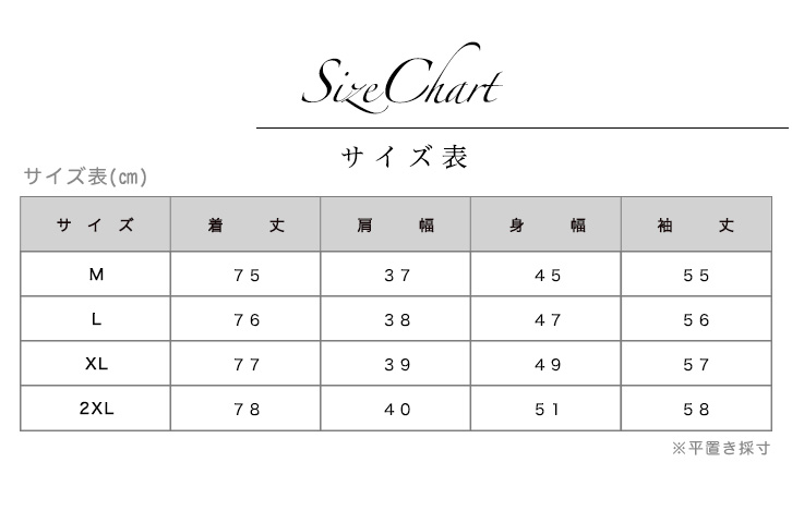 XLサイズ/着丈77、肩幅39、身幅49、袖丈57