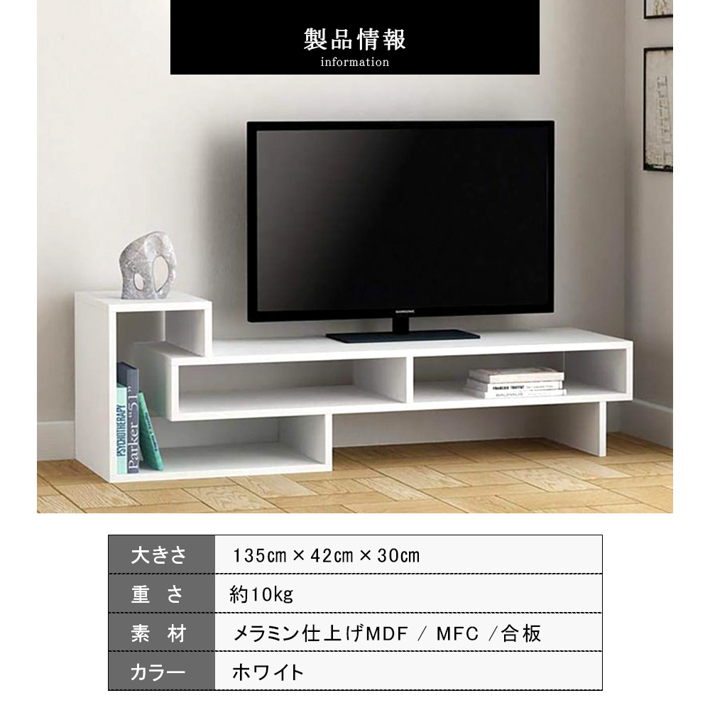 テレビ台 テレビボード テレビスタンド TV台 TVスタンド TVボード テレビラック ロータイプ ローボード 白 ワイドサイズ ワイドボード 幅135cm 奥行30cm 収納力抜群 オープン収納 収納棚 スタイリッシュ モダン シンプル おしゃれ インテリア
