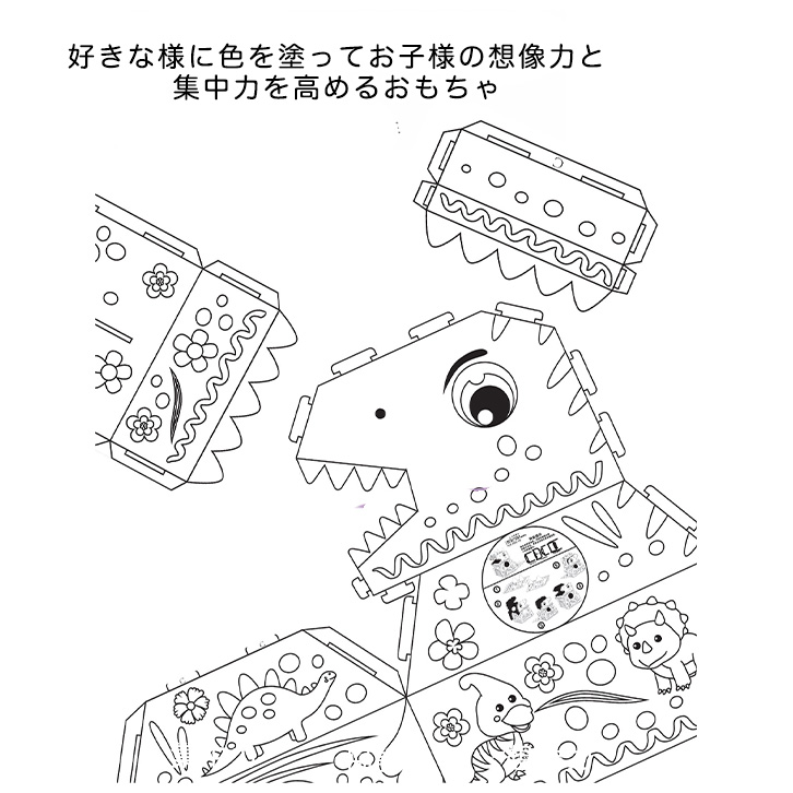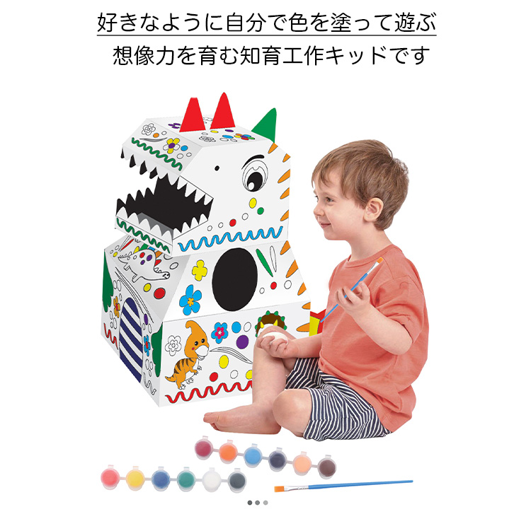 工作キット 知育工作キット 知育 工作 恐竜 塗り絵 色塗り アレンジ ダイナソー 子供 キッズ 幼児 男の子 女の子 紙のおもちゃ 組み立て 組み立てキット おもちゃ 紙素材 安全 おうち遊び おうち時間 作る 知育工作