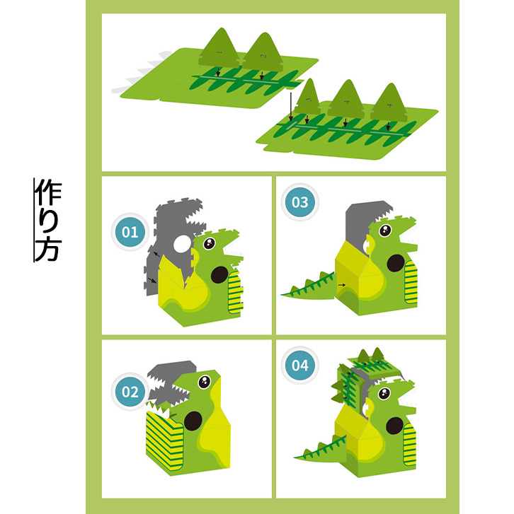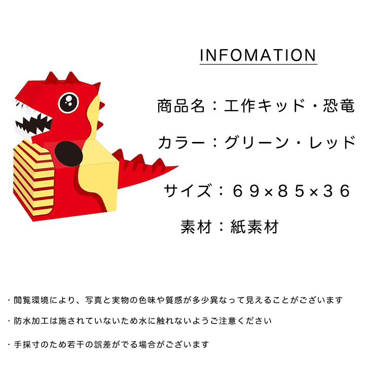 工作キット 知育工作キット 知育 工作 恐竜 グリーン レッド ダイナソー 子供 キッズ 幼児 男の子 女の子 紙のおもちゃ 組み立て 組み立てキット おもちゃ 紙素材 安全 おうち遊び おうち時間 作る 知育工作