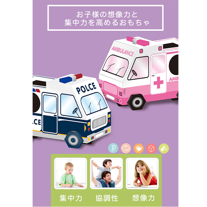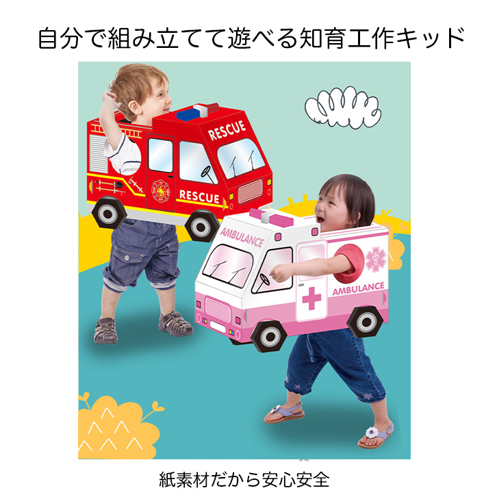 工作キット 知育工作キット 知育 工作 車 パトカー 消防車 救急車 子供 キッズ 幼児 男の子 女の子 紙のおもちゃ 組み立て 組み立てキット おもちゃ 紙素材 安全 おうち遊び おうち時間 作る 知育工作