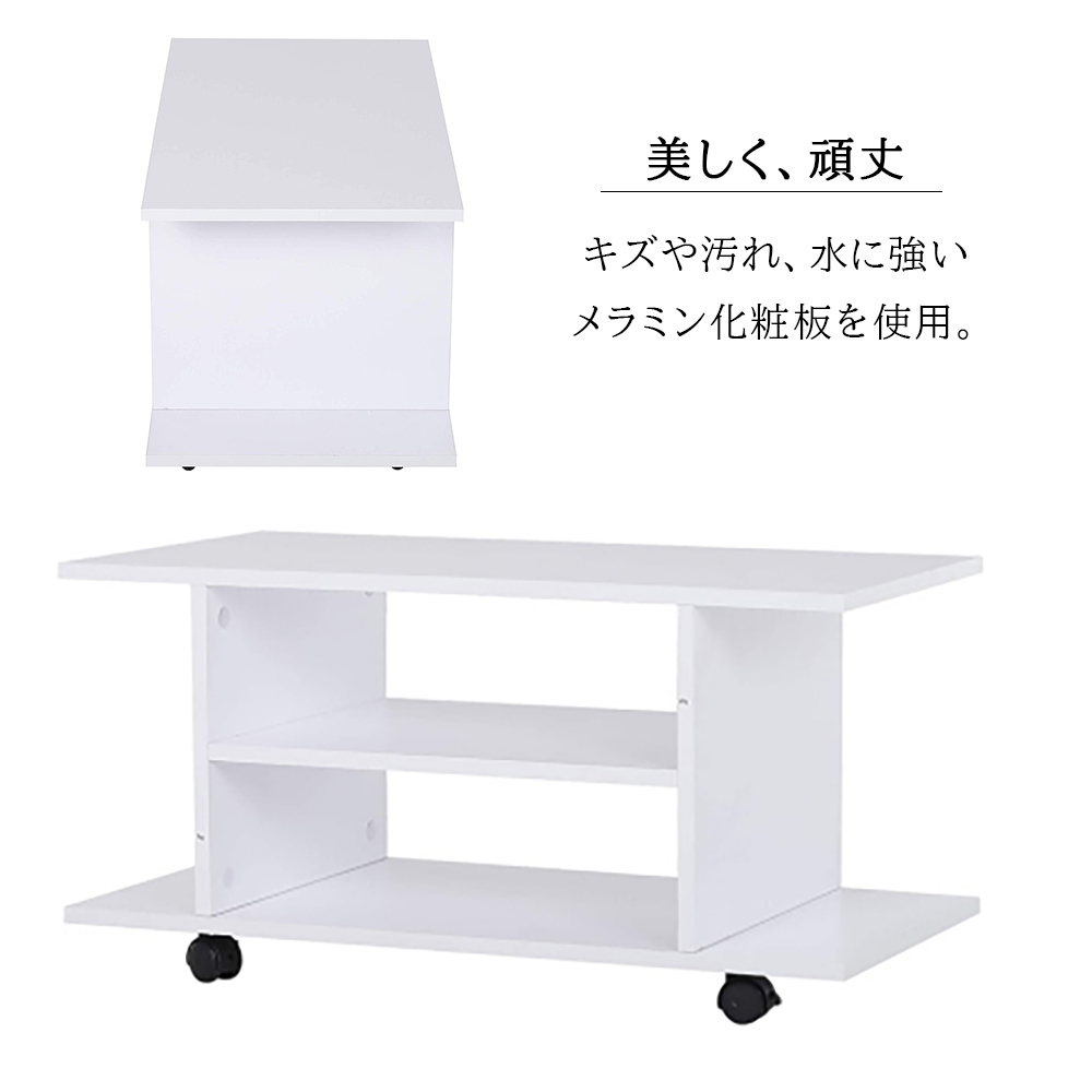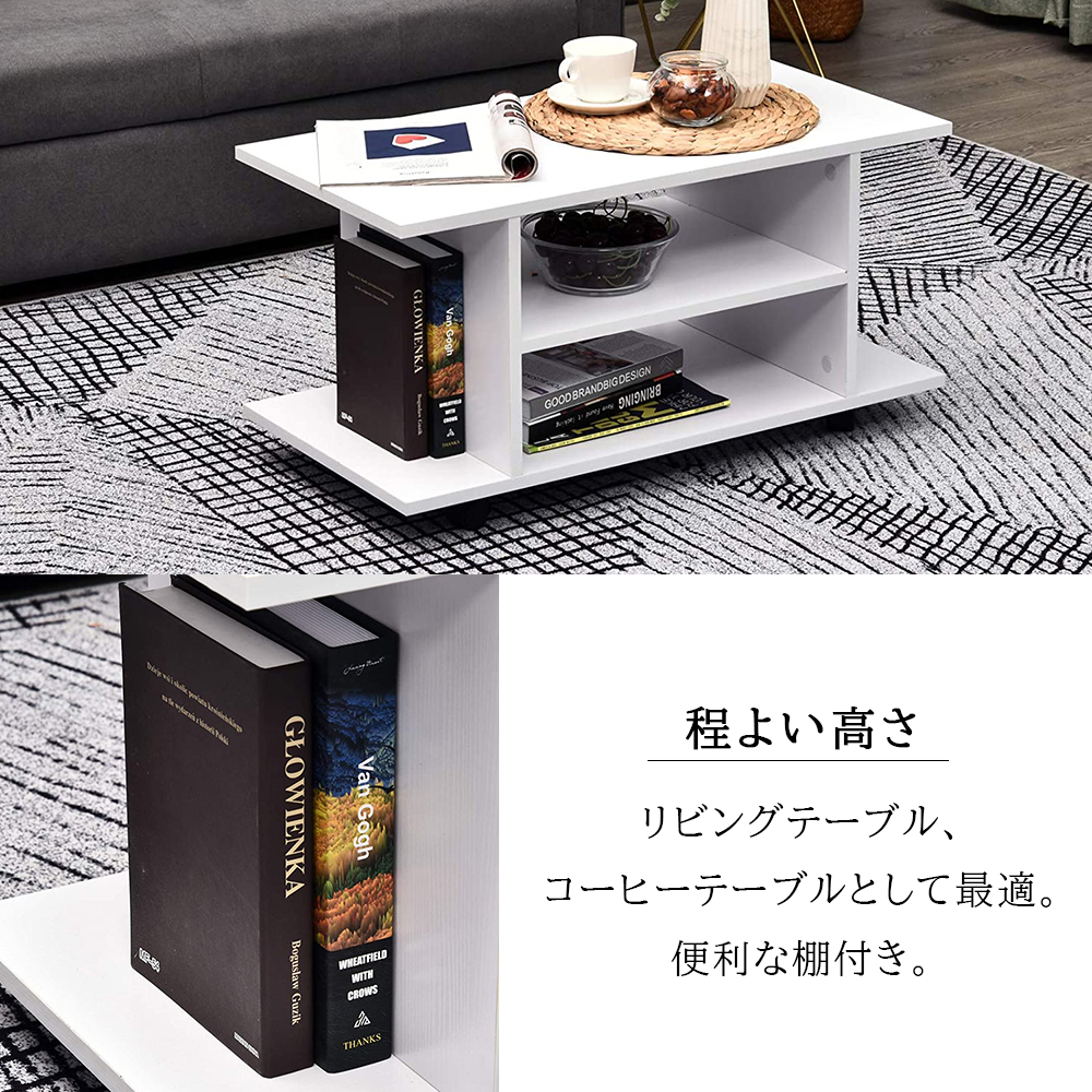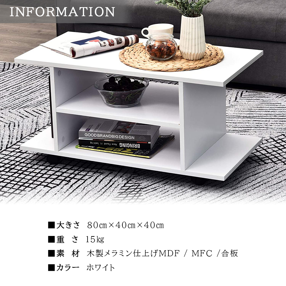 テーブル リビングテーブル センターテーブル コーヒーテーブル ホワイト 白 北欧 シンプル スタイリッシュ 幅80cm 高さ40cm 奥行40cm 多機能テーブル 収納棚付き 棚付き オープン収納 キャスター付き 移動 一人暮らし 新生活