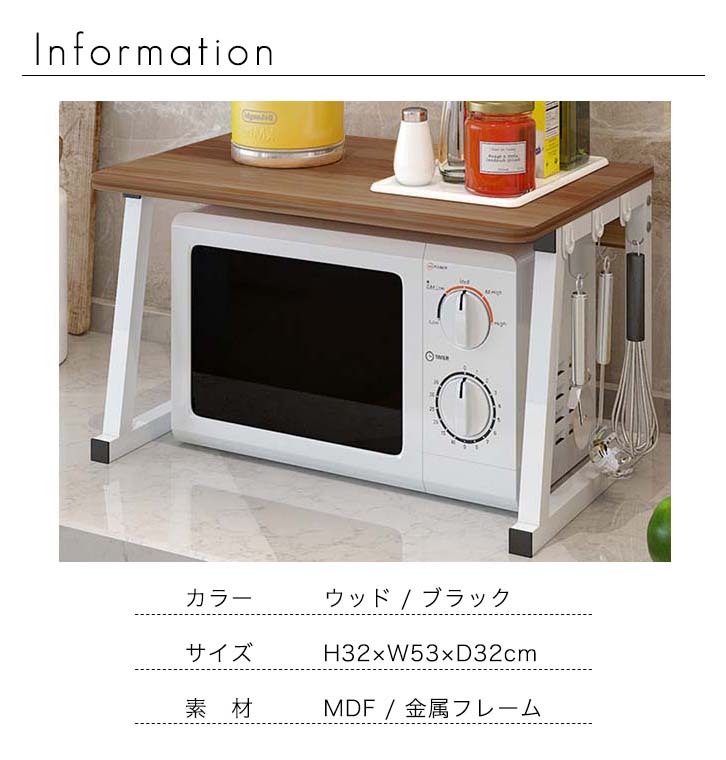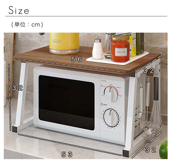 レンジラック トースターラック トースター台 レンジ台 レンジ上 キッチン収納 収納ラック 収納棚 シンプル 組立簡単 防水 お手入れ簡単 幅56cm 高さ32cm 奥行32cm キッチン収納ラック 電子レンジ トースター