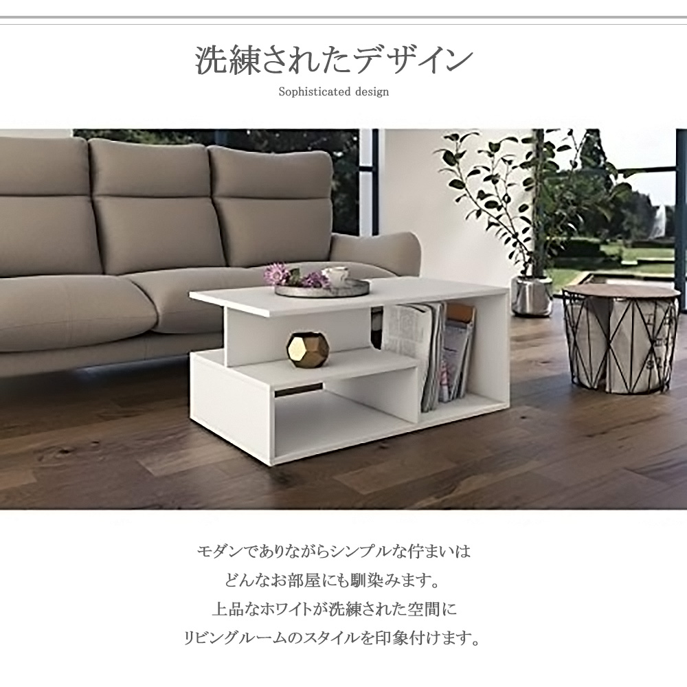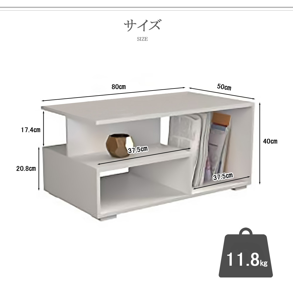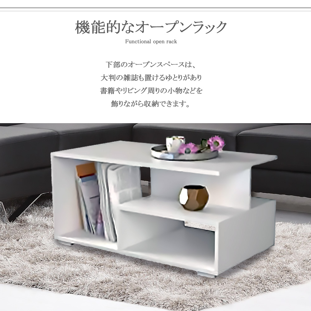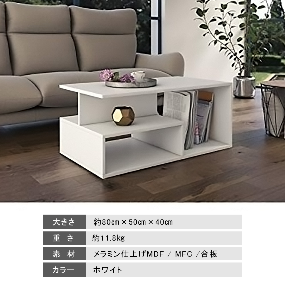 テーブル リビングテーブル センターテーブル コーヒーテーブル ホワイト 白 北欧 シンプル スタイリッシュ 幅80cm 高さ40cm 奥行50cm 棚付き オープン収納 移動 一人暮らし 新生活 おしゃれ ユニーク 棚