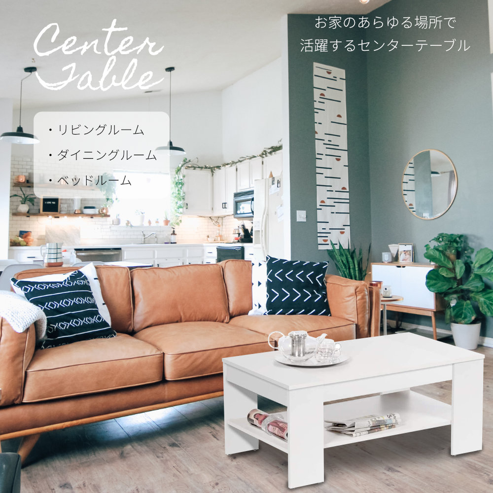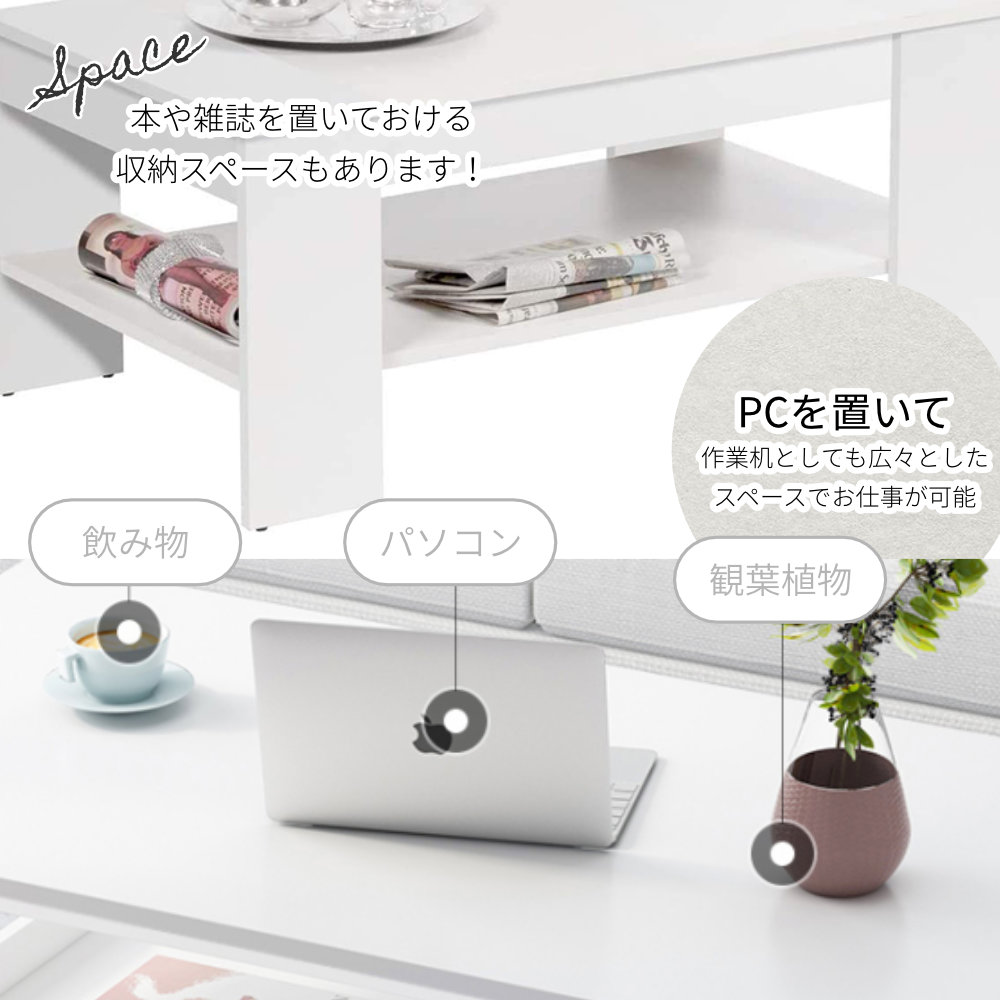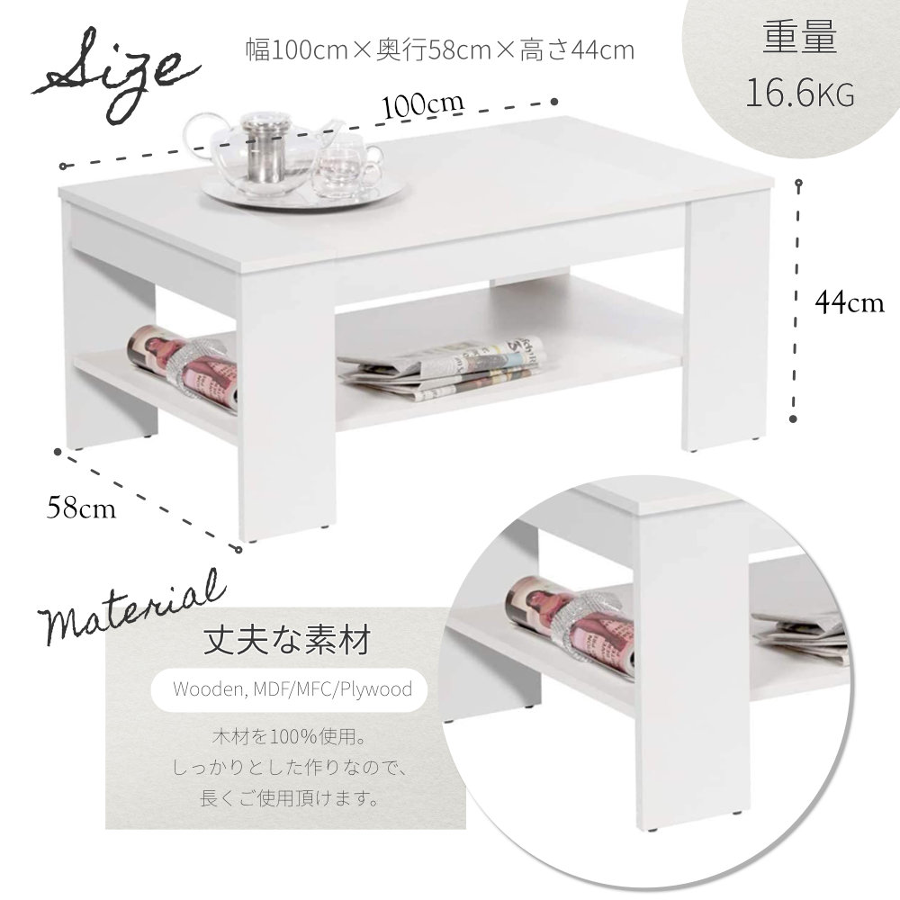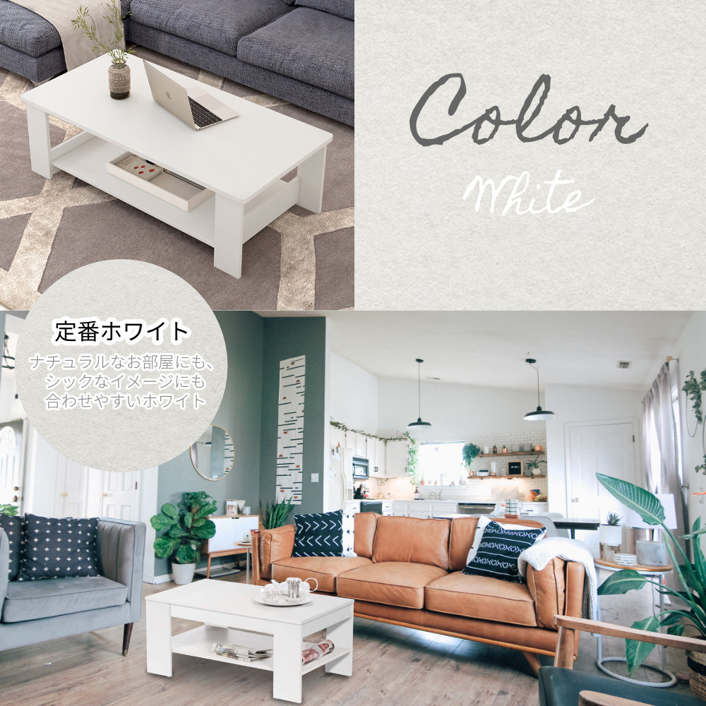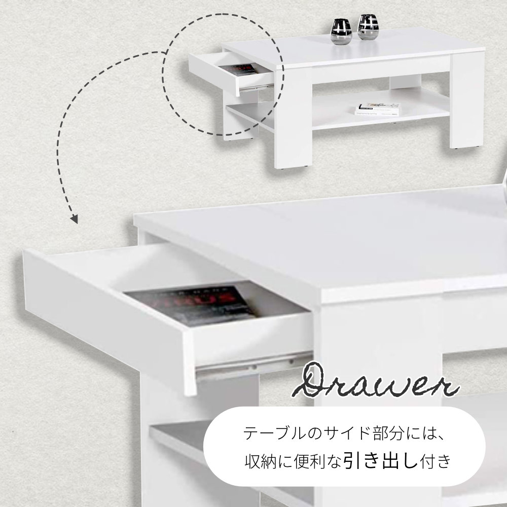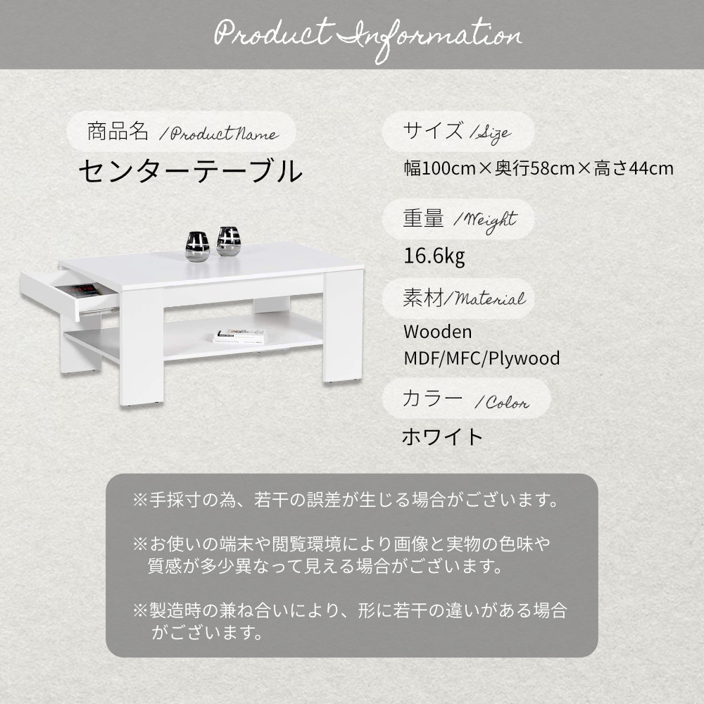 テーブル センターテーブル ローテーブル リビングテーブル ホワイト 白 北欧風 シンプル ナチュラル 幅100cm 高さ44cm 奥行58cm 収納棚 木製 引き出し収納 作業机 読書 PC作業 リモートワーク 在宅 読書 機能性 実用性