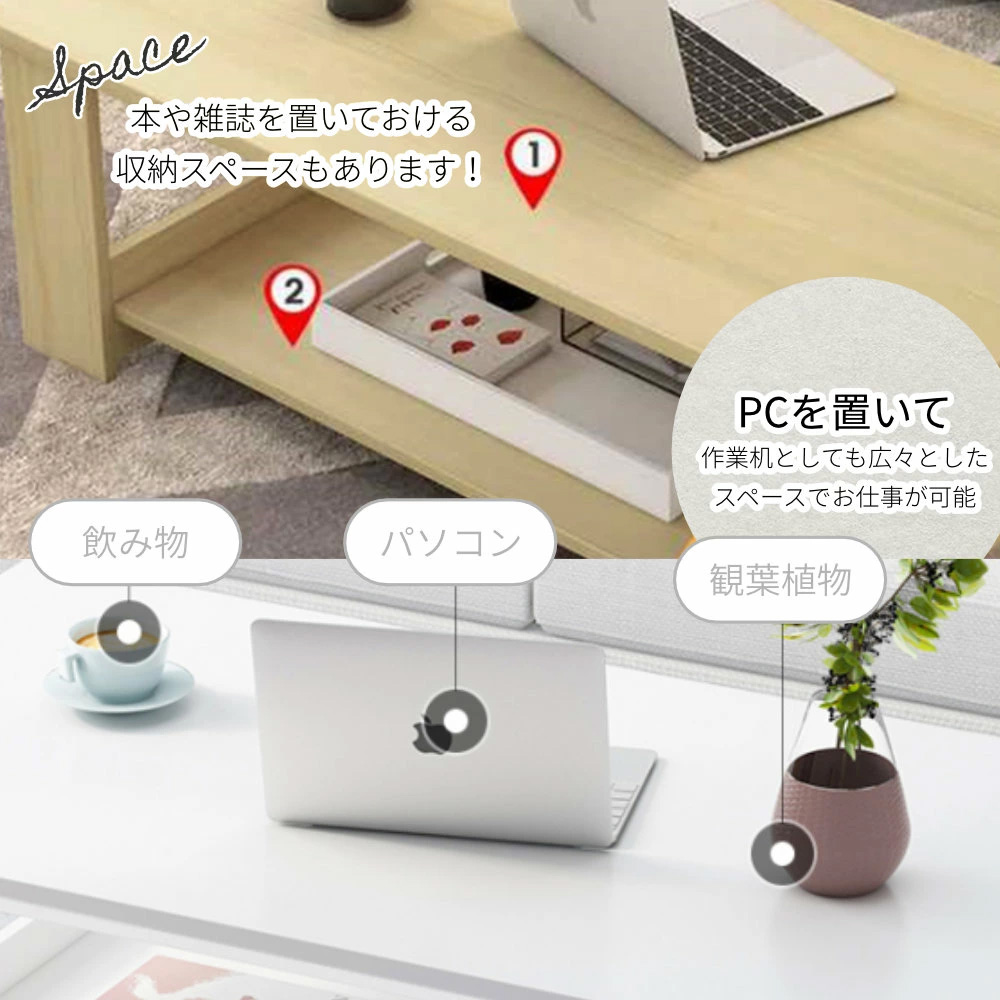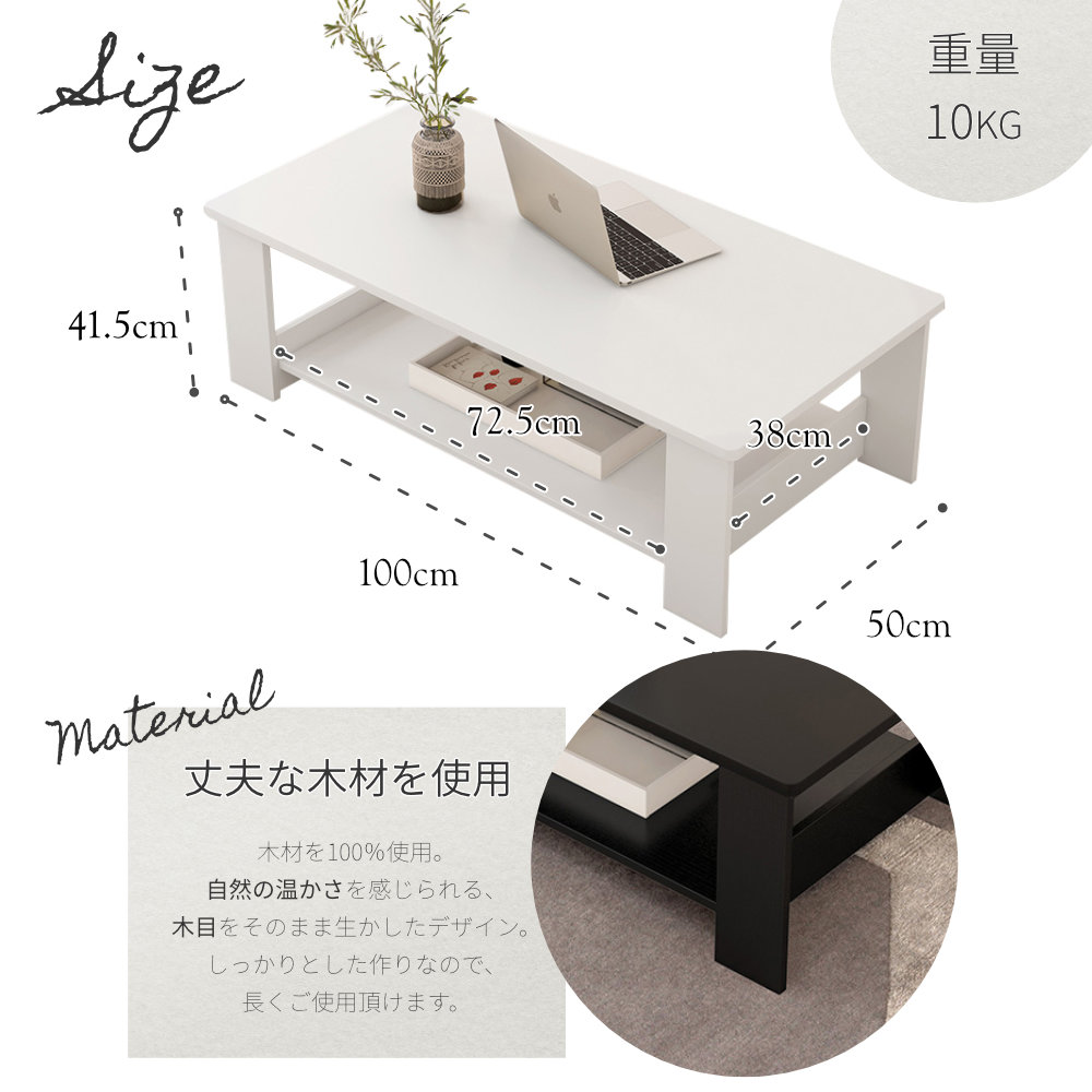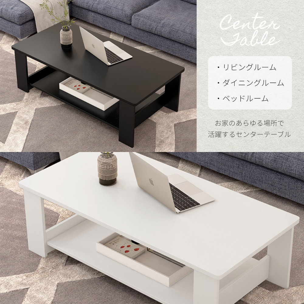 センターテーブル ローテーブル シンプル おしゃれ 北欧風 テーブル リビングテーブル リビング 幅100cm 奥行50cm 高さ41.5cm スタイリッシュ オシャレ 収納棚付き オープン棚付き 収納棚 作業テーブル 収納付き