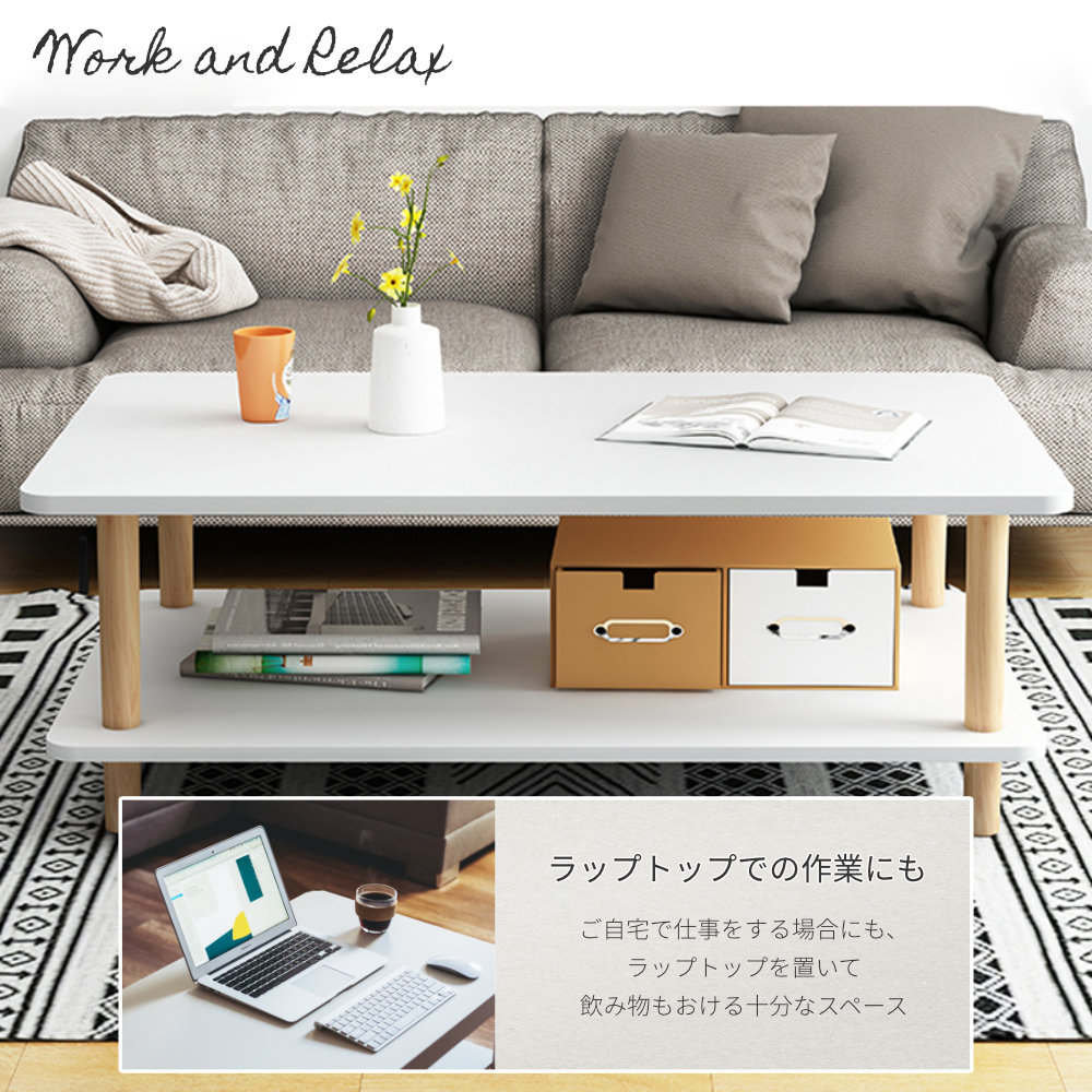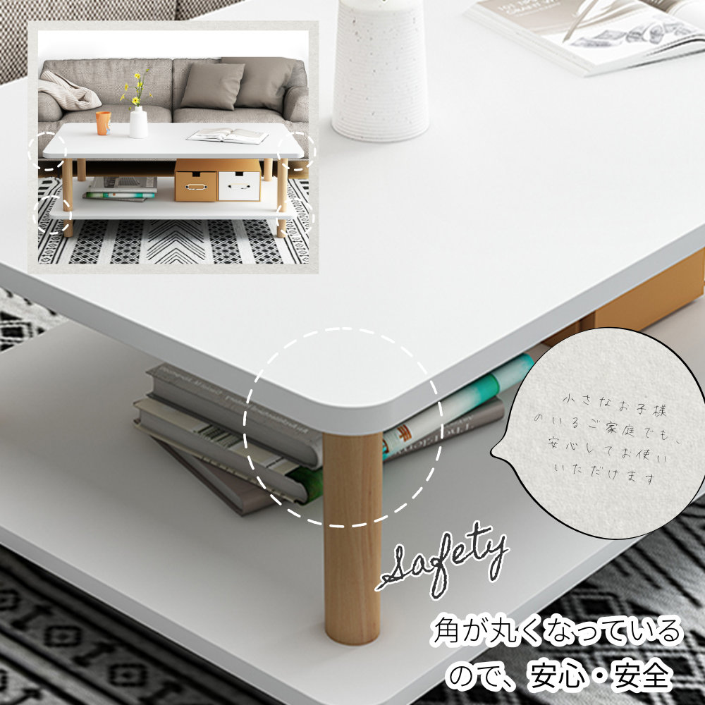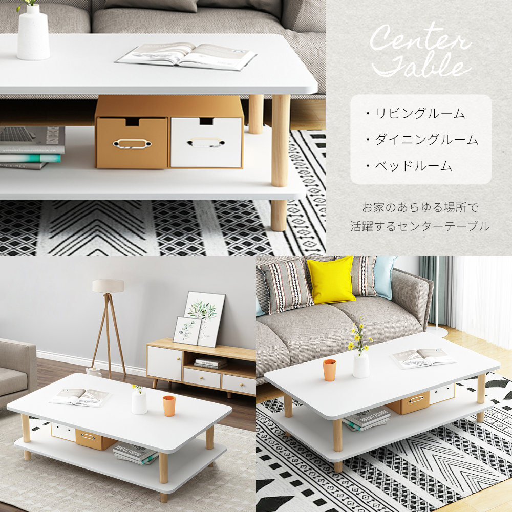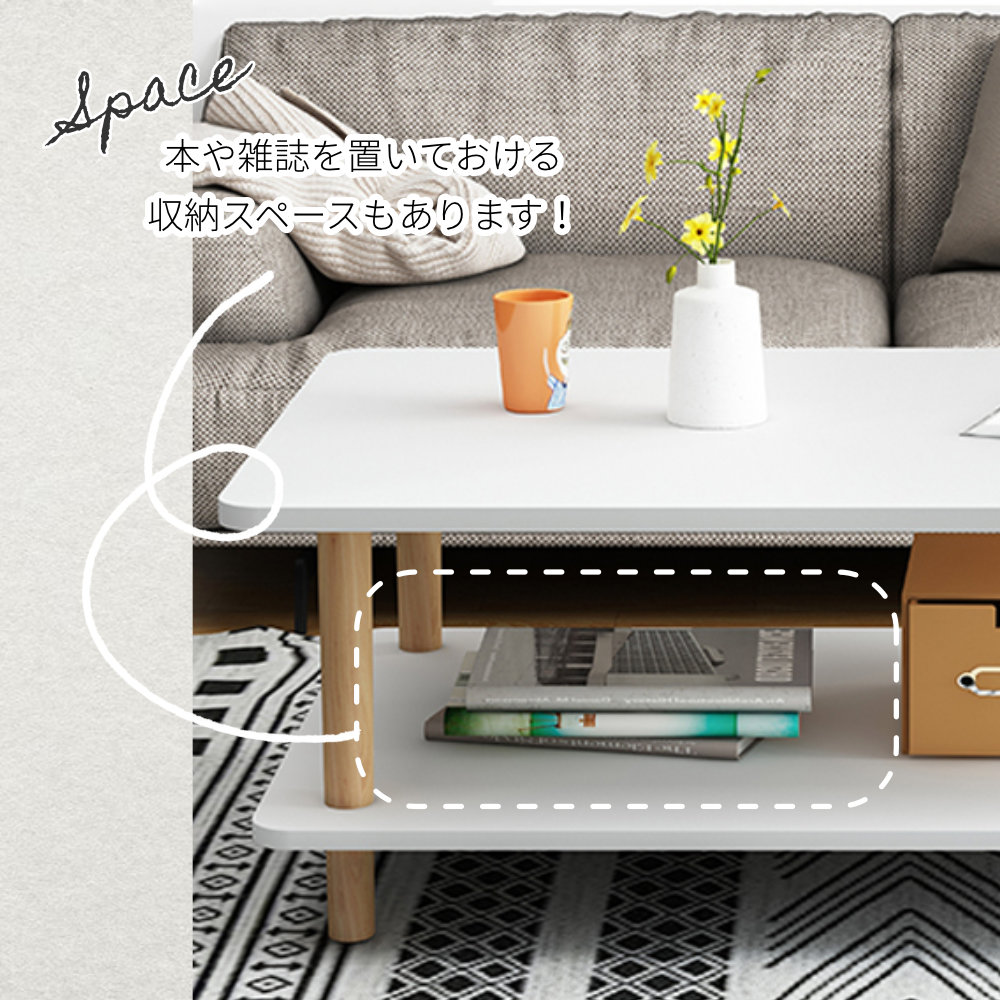 センターテーブル ローテーブル 北欧風 おしゃれ ホワイト テーブル リビングテーブル ダイニング リビング 幅80cm 奥行40cm 高さ43cm シンプル オシャレ 収納棚付き オープン棚付き コンパクト ナチュラル 一人暮らし 収納棚