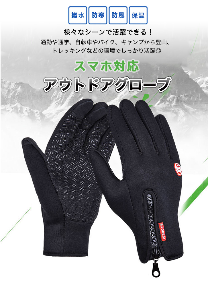 手袋 スマホ対応手袋 アウトドアグローブ トレッキンググローブ バイク 撥水 防寒 暴風 保温 スマホ対応 通勤 通学 自転車 キャンプ 登山 アウトドア タッチパネル操作可能 防水コーティング 万能手袋 4カラー 男女
