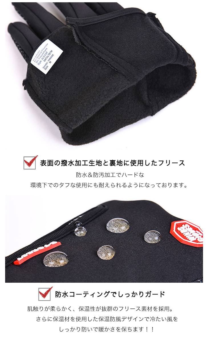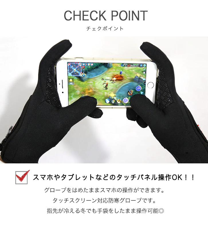 タッチスクリーン対応の防寒グローブなので