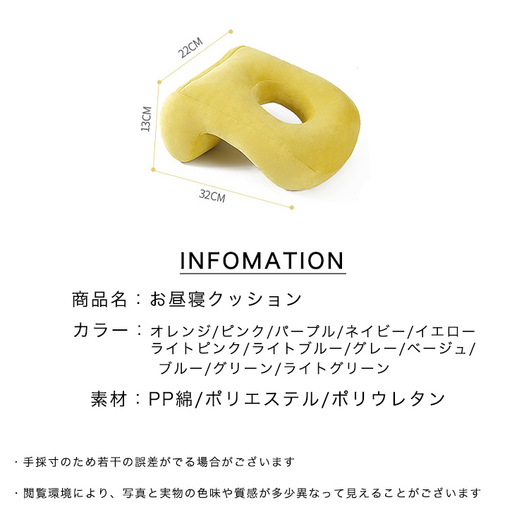 枕 まくら お昼寝枕 お昼寝クッション クッション ピロー オフィス デスク 休憩 うたた寝 仮眠用 昼寝クッション 旅行 仮眠用枕 大人 子ども 中空穴付き 腕が痛くならない 学校 スクール 通気穴付き ネックピロー うつぶせ寝 リラックス カラー豊富