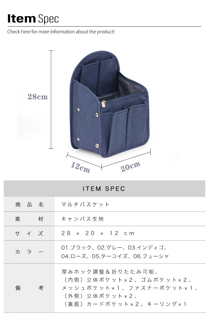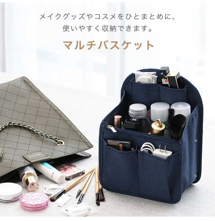 バスケット マルチバスケット 収納 バッグインバッグ 収納力抜群 整理整頓 カラー豊富 レディース メンズ コスメ 化粧品 雑貨 文房具 収納ポケット リング金具 折りたたみ可能 ホック付き コンパクト カラーバリエーション豊富
