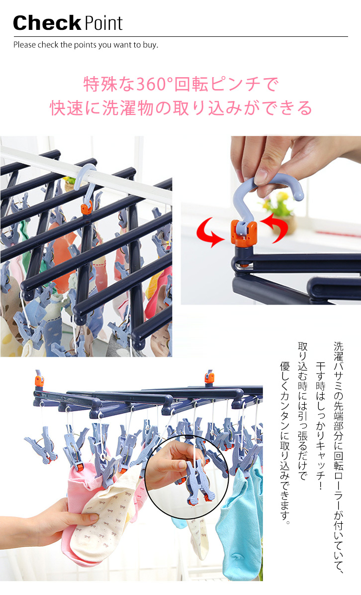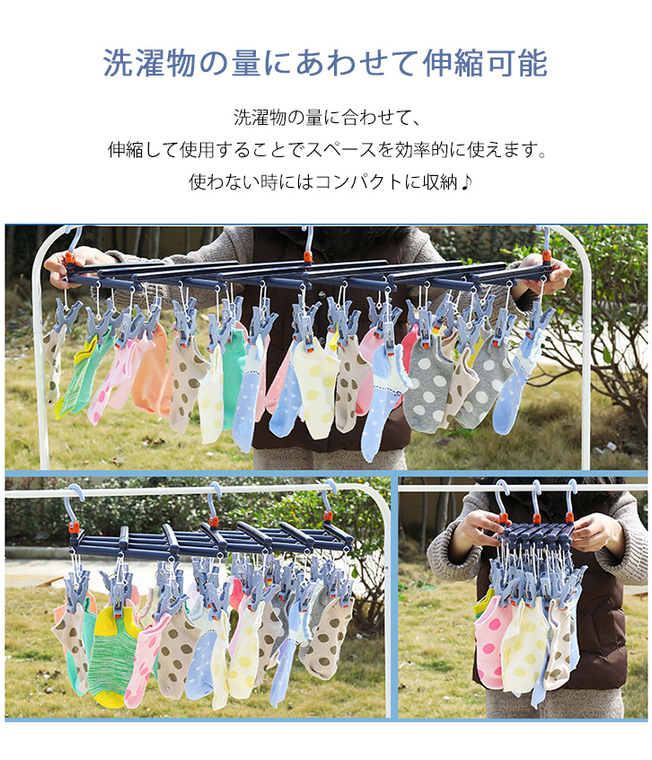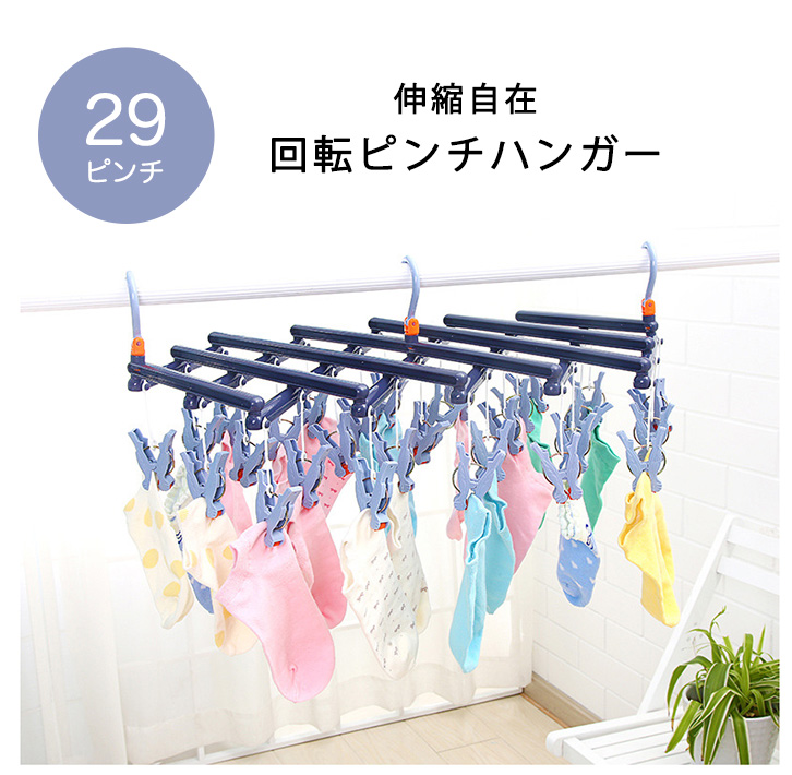 ハンガー 洗濯ハンガー 回転ピンチハンガー 伸縮式 伸縮自在 29ピンチ 伸縮自在回転ピンチハンガー 回転ローラー ローラーピンチ 引っ張るだけ 伸縮可能 省スペース 3点フック式 安定感抜群 洗濯 カラー豊富