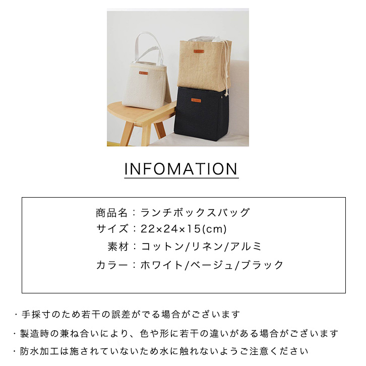 ランチバッグ ランチボックスバッグ 保冷素材 可愛い 大人カジュアル ナチュラル カジュアル オシャレ シンプル オフィス 学校 お弁当入れ 巾着仕様 ホワイト ベージュ ブラック ピクニック アウトドア かわいい おしゃれ