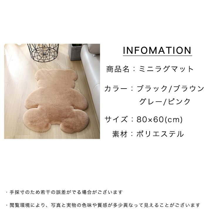 ラグマット ミニラグ ミニサイズ ミニラグマット ラグ くま アニマルラグ ベア ベアー アニマル 動物 かわいい 子供部屋 玄関 ベッドサイド 可愛い 肌触り抜群 おしゃれ インテリア キュート クマさん