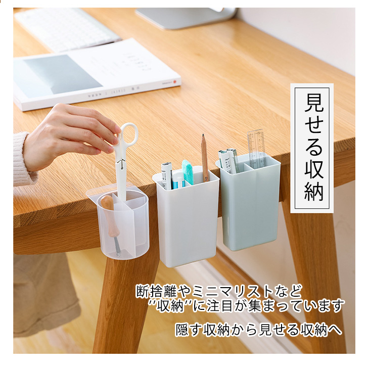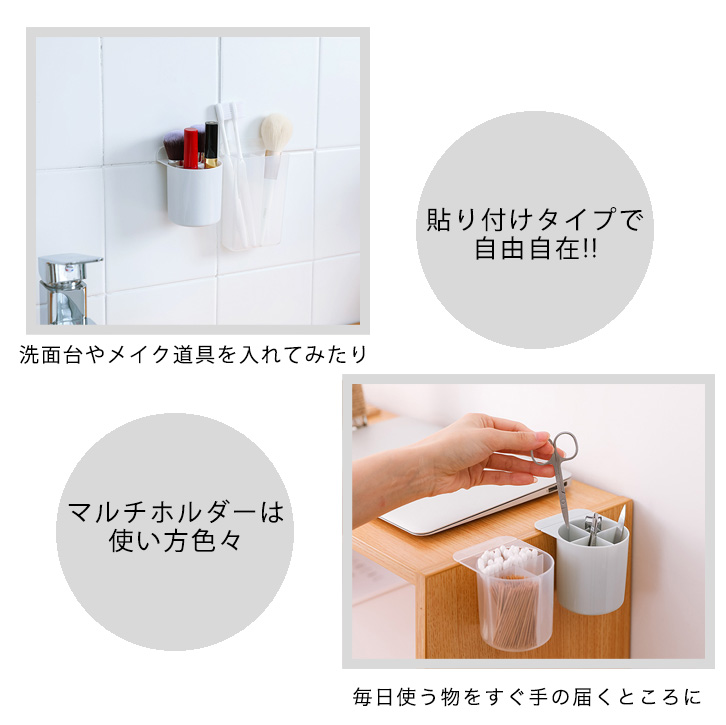 ペン立て ペンホルダー 小物入れ マルチホルダー ペンスタンド 同タイプ2セット 卓上収納 デスク収納 多機能 整理整頓 収納 オフィス デスク 文房具 粘着テープ取り付け 文具 小物 ペン 小物収納 四角 丸型 デスクトップモニターペンホルダー