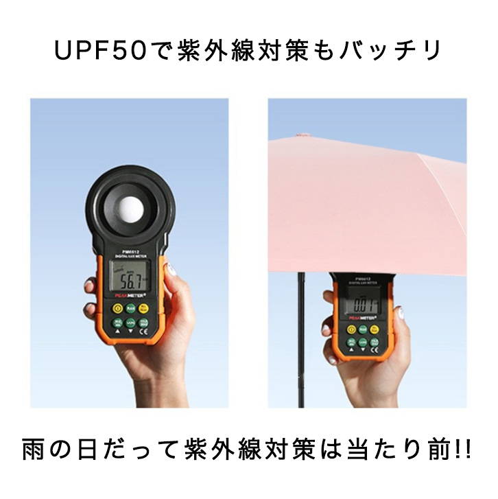 コンパクトで持ち運びに便利な晴雨兼用折りたたみ傘。