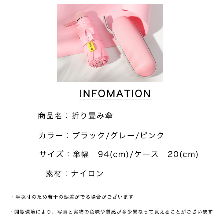 傘 折りたたみ傘 折り畳み傘 折り畳み 折りたたみ コンパクト 晴雨兼用 紫外線対策 シンプル 持ち運び便利 雨天 日傘 ケース付き UV対策 防水 持ちやすい 直径94cm 丈夫 通勤 通学 ピンク グレー ブラック