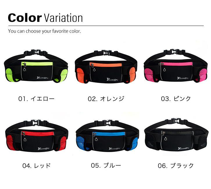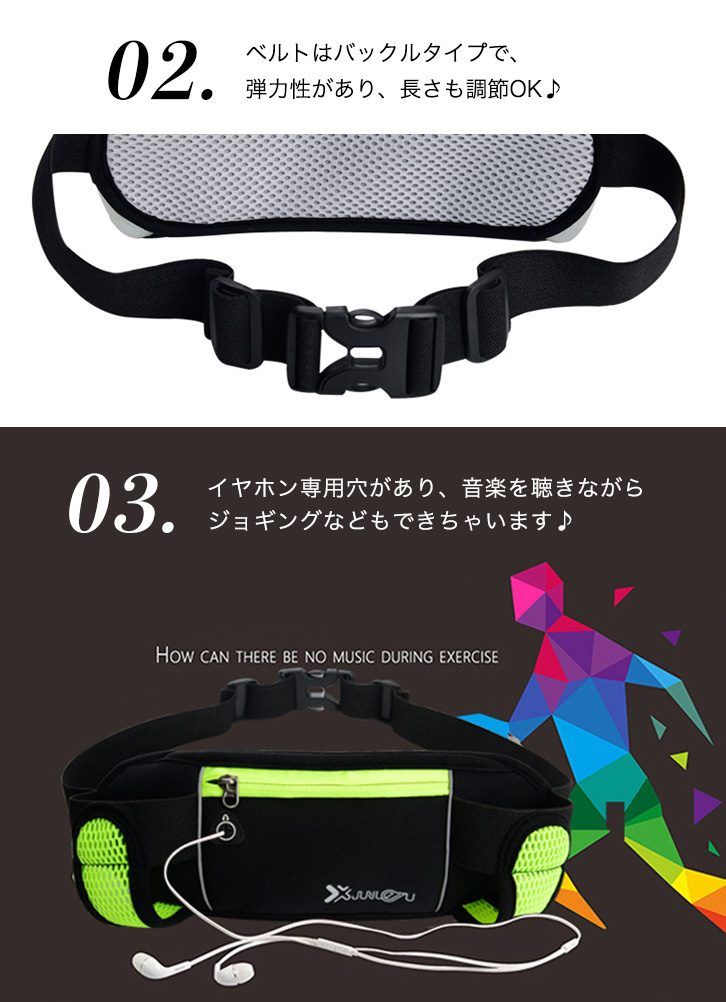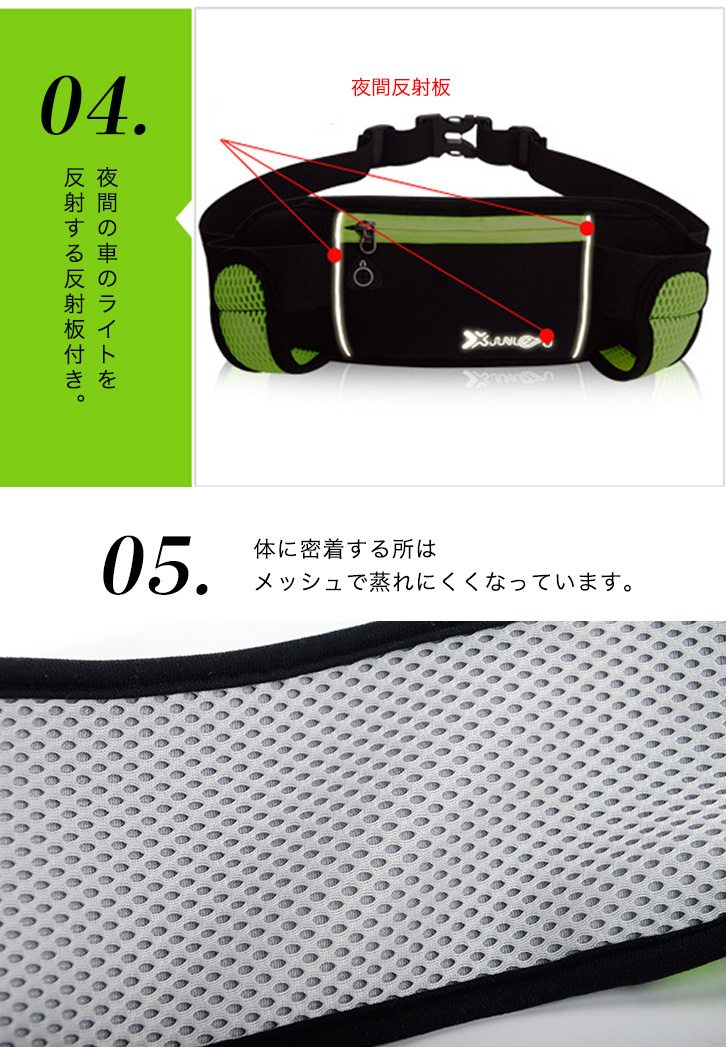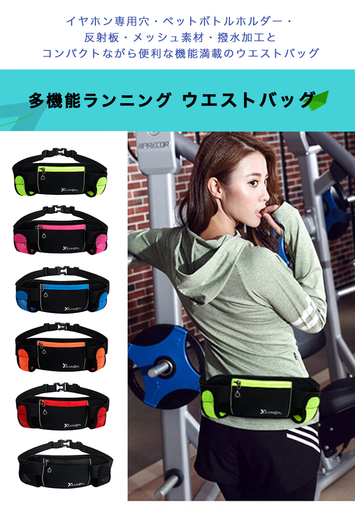 ランニングポーチ ウエストバッグ ランニングウエストバッグ 多機能 機能性抜群 メッシュ素材 蒸れにくい 反射板付き カラー豊富 撥水加工 ペットボトル収納 イヤホンホール コンパクト 機能的 ウエスト調整アジャスター