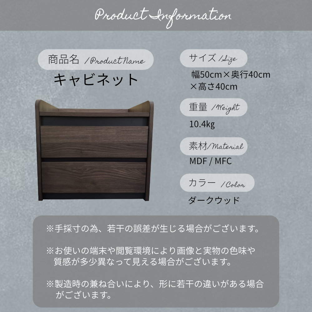 キャビネット キャビネット収納 収納キャビネット 幅50cm 2段 2段キャビネット シンプル モダン おしゃれ シック 木製 奥行40cm 高さ40cm サイドキャビネット 高級感 寝室 リビング 引き出し 収納棚 ベッドサイド 収納力抜群