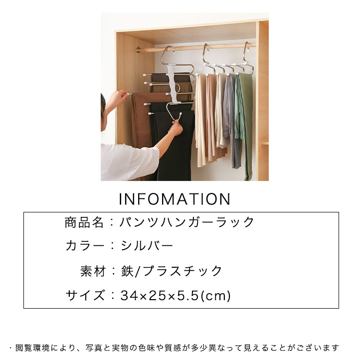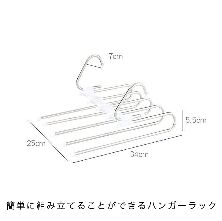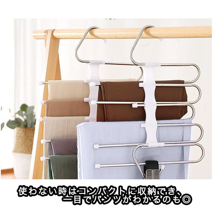 パンツハンガー ハンガー ズボン用ハンガー スラックスハンガー ハンガーラック パンツ ボトム ズボン スカート 省スペース収納 整理整頓 コンパクト収納 しわ防止 使いやすい 5足 収納用 ズボン収納 ボトム収納 クローゼット