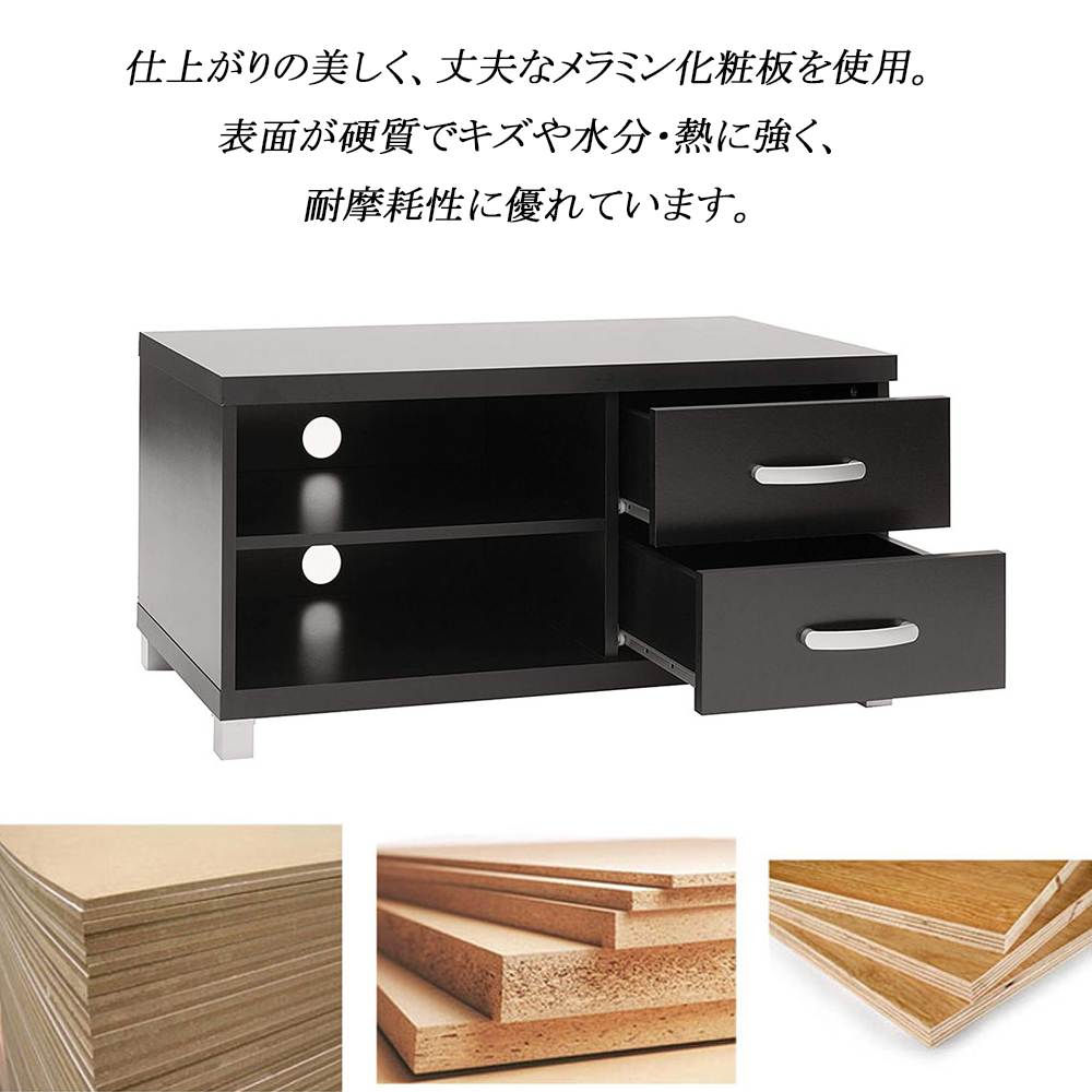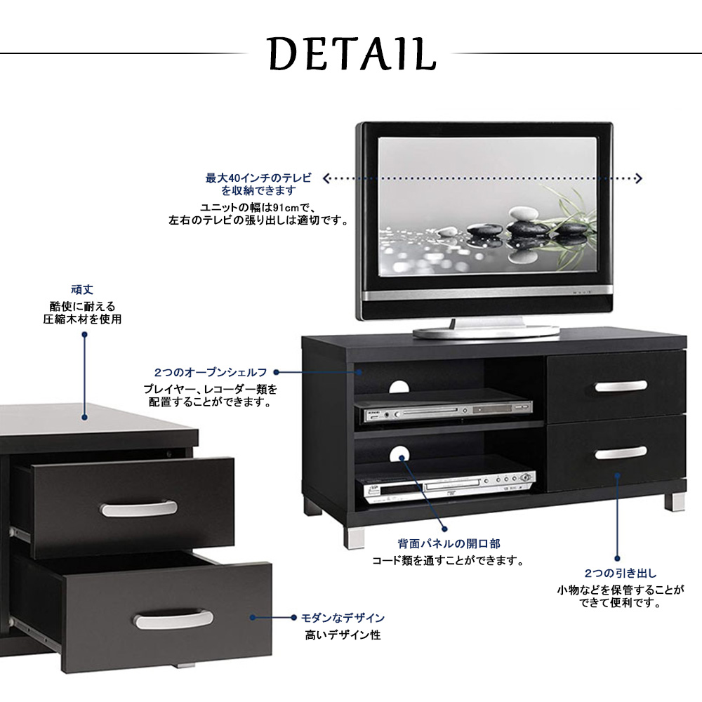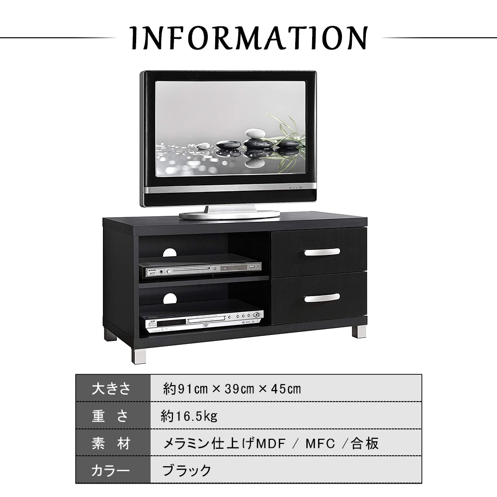 テレビ台 テレビボード テレビスタンド TV台 TVボード TVスタンド テレビラック モダン スタイリッシュ 幅91cm ブラック シンプル おしゃれ オープン収納棚 引き出し 2段 収納力抜群 大容量収納 奥行39cm 高さ45cm 収納