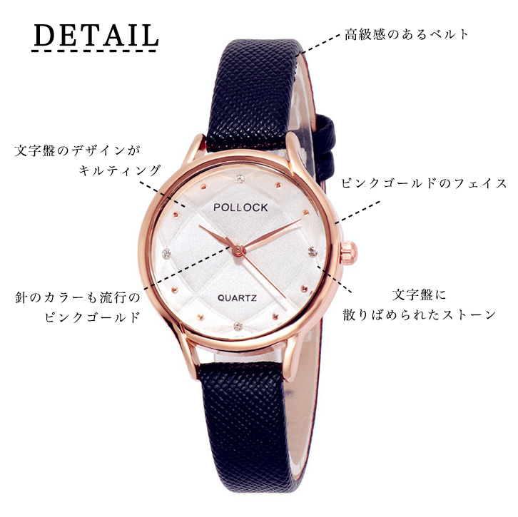 腕時計 レディース 腕 時計 レディースウォッチ ウォッチ キルティングデザイン ストーン ピンクゴールド カラー豊富 おしゃれ かわいい 大人かわいい デイリー カジュアル オフィス シンプル 合わせやすい 高級感