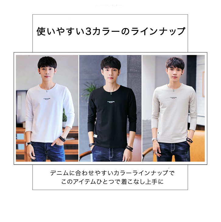 トップス ロンT ロングTシャツ 長袖 メンズ シンプル 着回し抜群 合わせやすい 使いやすい ロングスリーブTシャツ ワンポイントロゴ入り ストレッチ性 着心地抜群 カジュアル ブラック ベージュ ホワイト サイズ豊富