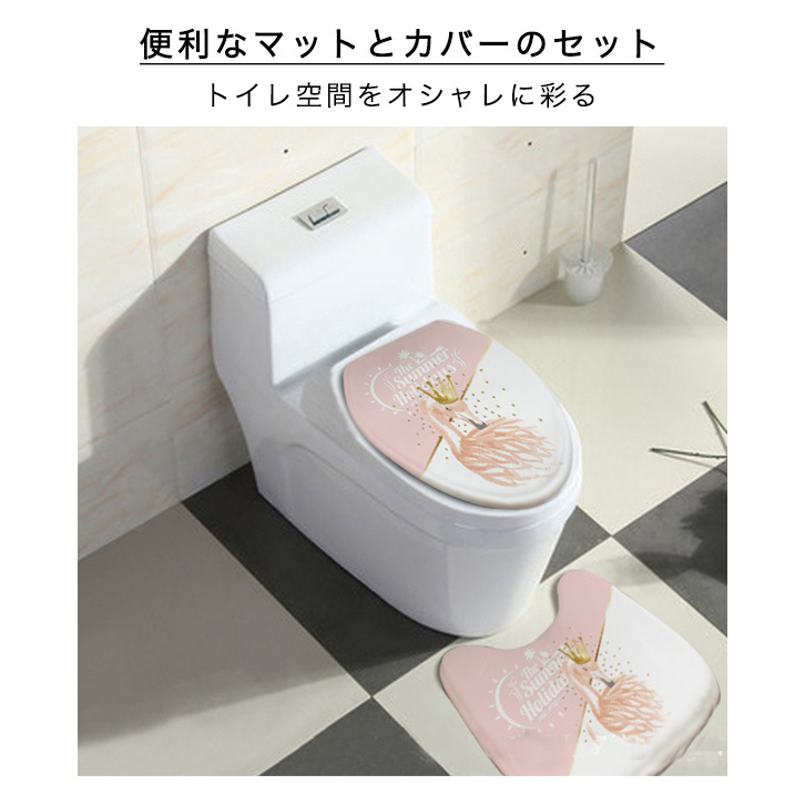 トイレマット カバー トイレ用品 オシャレ フラミンゴ 羽 羽モチーフ おしゃれ インテリア トイレ用マット 蓋カバー トイレ蓋カバー かわいい お洒落 蓋 床 貼る ふたカバー マット 2点セット セット