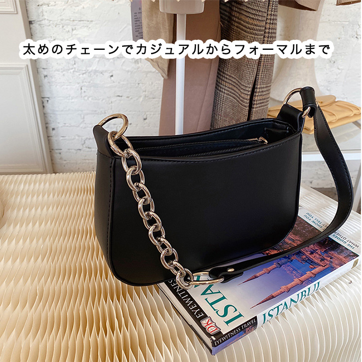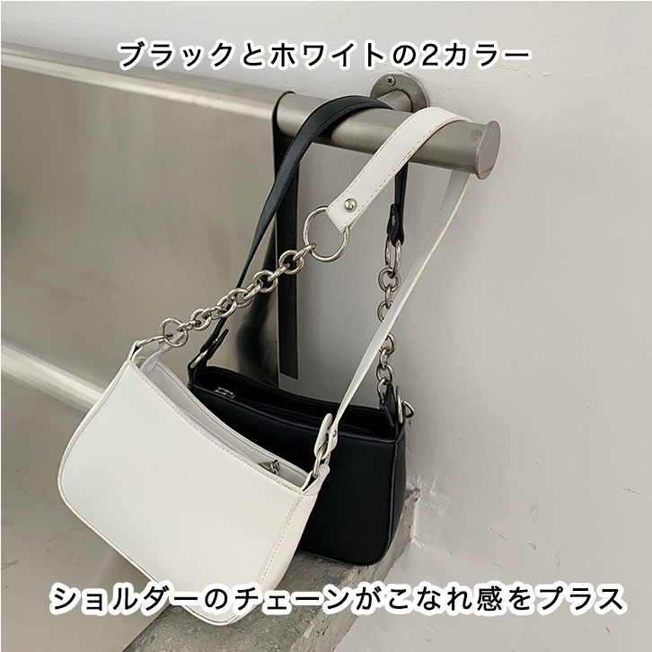 バッグ ショルダーバッグ ハンドバッグ チェーンショルダー チェーン ミニバッグ コンパクト シンプル 無地 使いやすい 合わせやすい デイリー 大人可愛い ブラック ホワイト ファスナー開閉 大人カジュアル