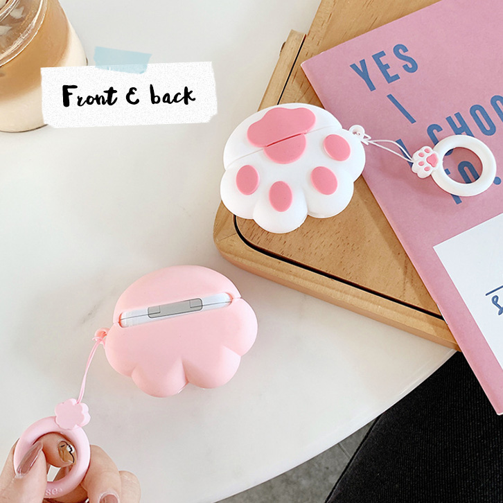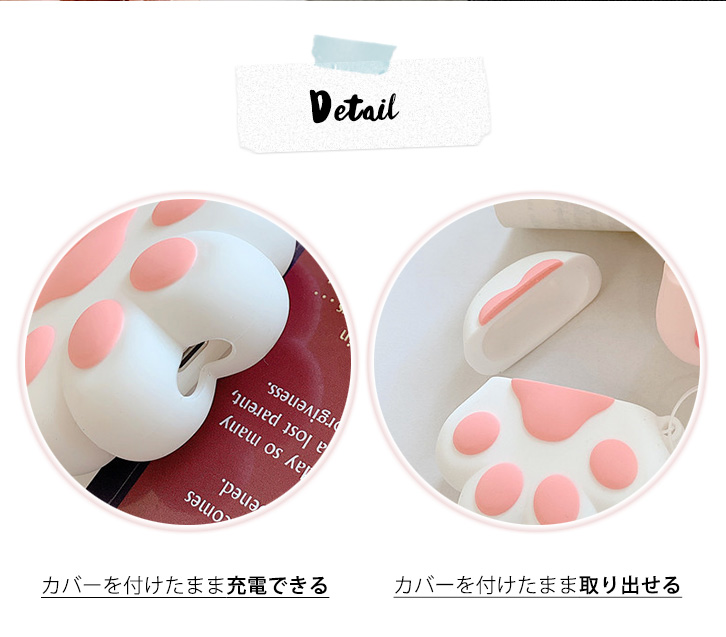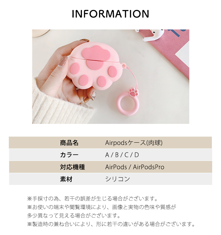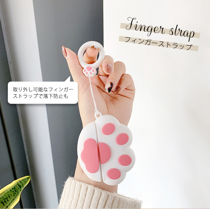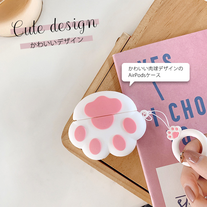 Airpodsケース AirpodsProケース カバー Airpodsカバー Airpods専用ケース 肉球 かわいい 肉球デザイン キュート 傷防止 汚れ防止 フィンガーストラップ付き 落下防止 シリコンケース シリコン 着脱簡単 ホワイト ピンク