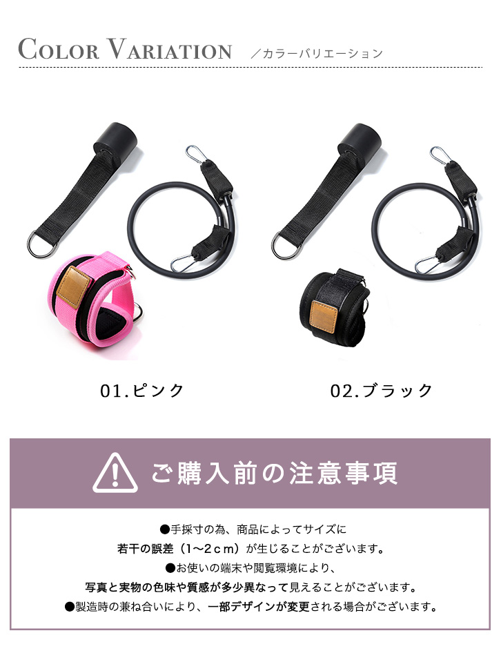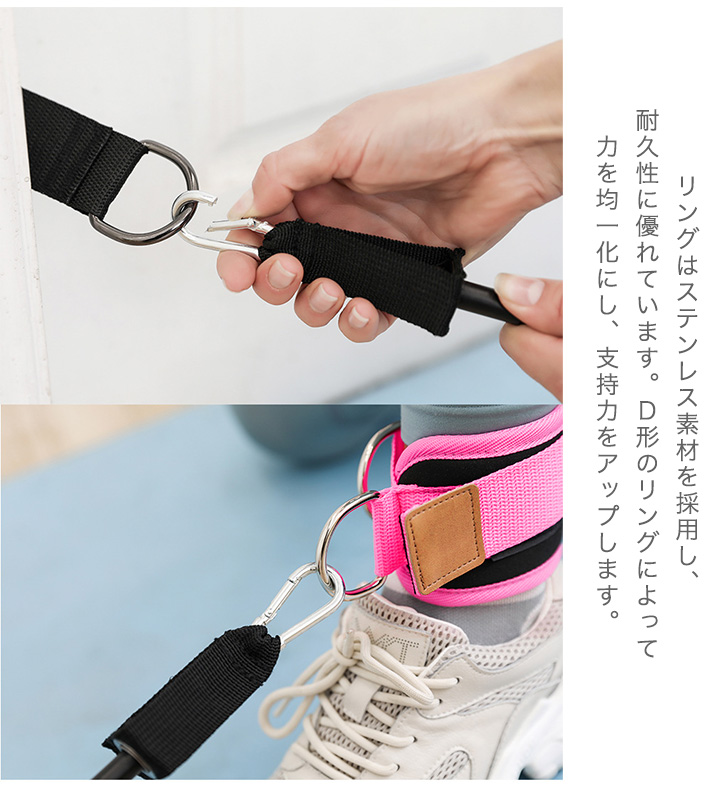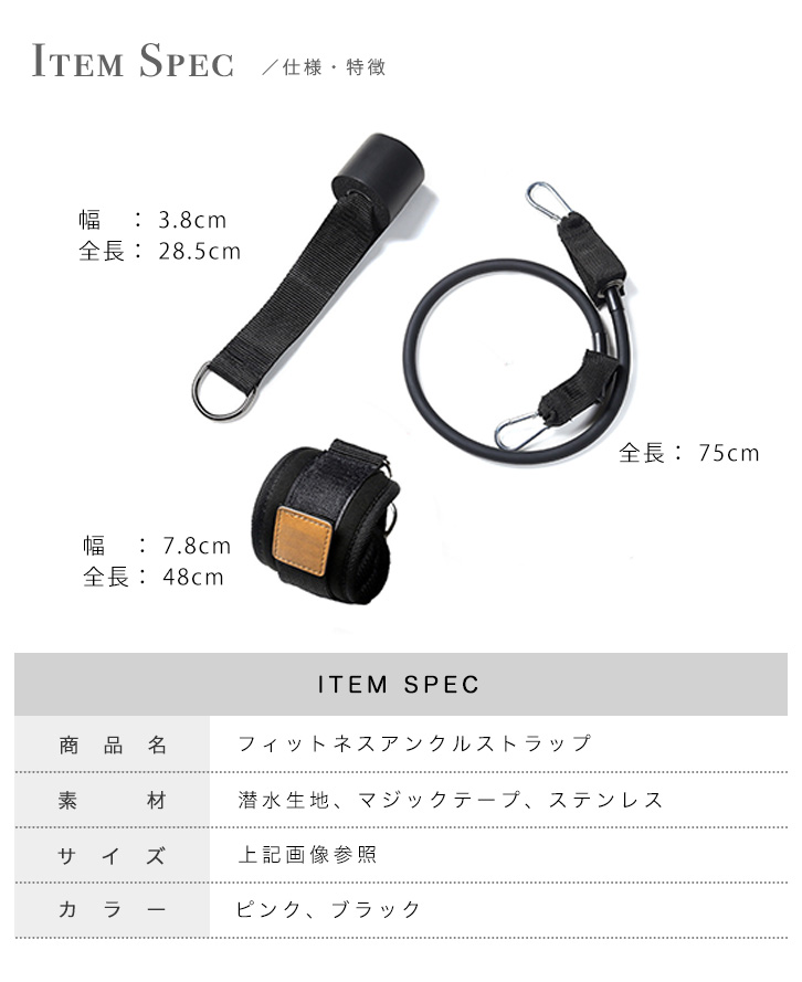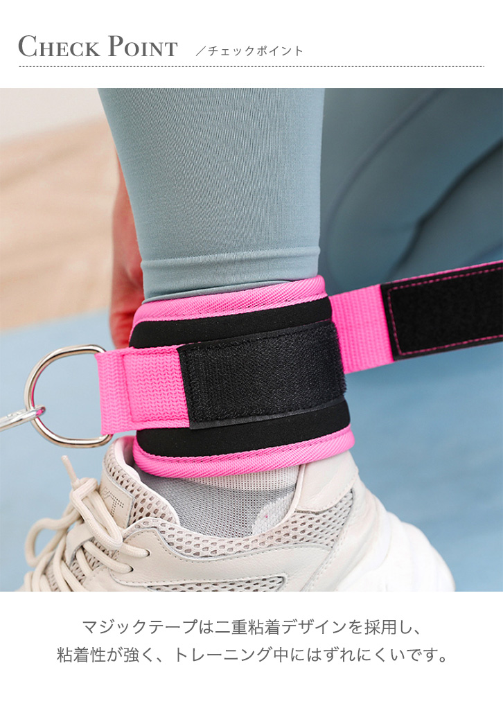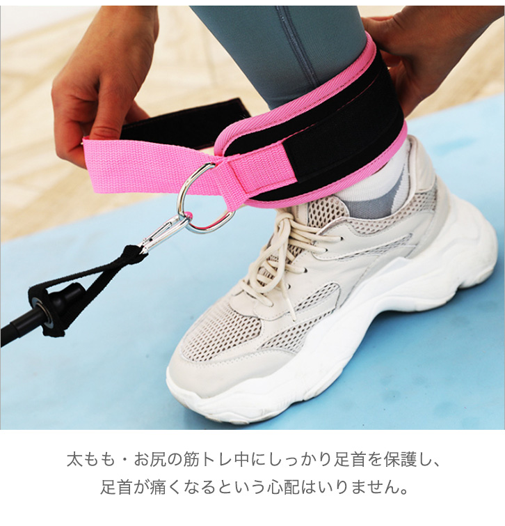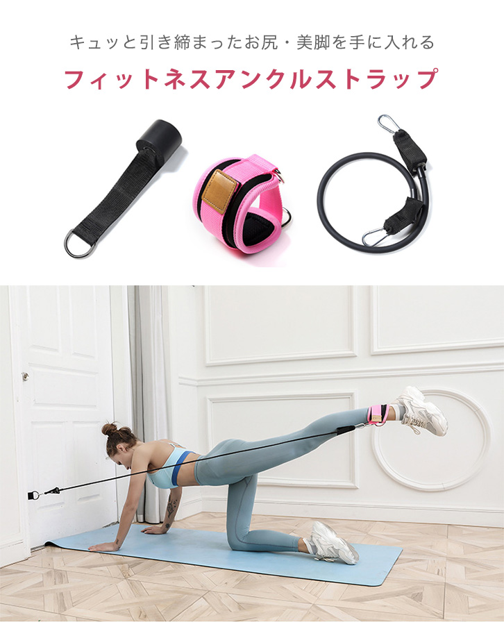 フィットネス アンクルストラップ フィットネスアンクルストラップ トレーニングチューブ エクササイズ 運動 ダイエット 鍛える 筋トレ 美脚 美尻 マジックテープ 耐久性 足首保護 ピンク ブラック トレーニング 下半身痩せ