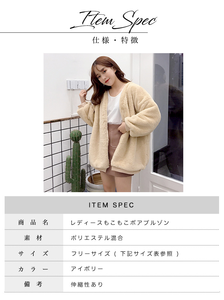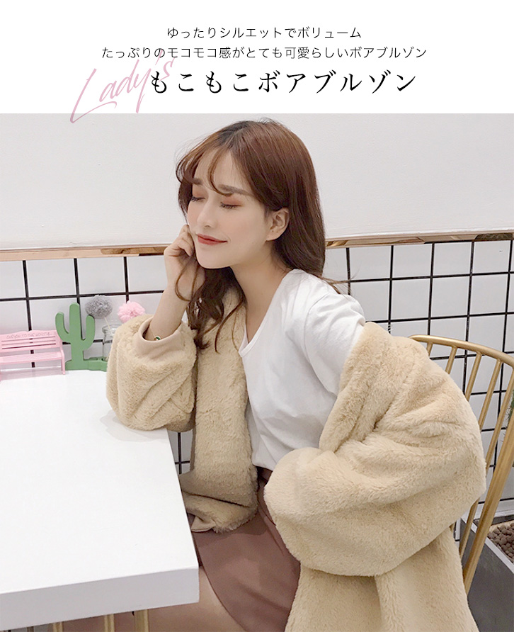 ブルゾン レディース 上着 羽織り アウター レディースブルゾン ボア ボアブルゾン もこもこ ボア素材 あったかい 冬 秋 防寒 可愛い ゆったりシルエット ボリューム ふわふわ かわいい キュート カジュアル シンプル 合わせやすい