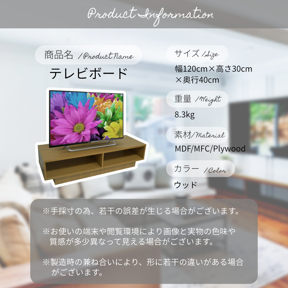 テレビ台 テレビボード TV台 TVボード ローボード ロータイプ テレビスタンド テレビラック 幅120cm シンプル 木目調 ナチュラル リビング 寝室 スタイリッシュ オープン収納 高さ30cm 奥行40cm モダン