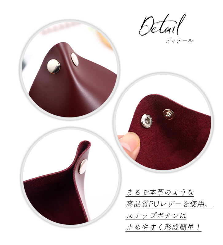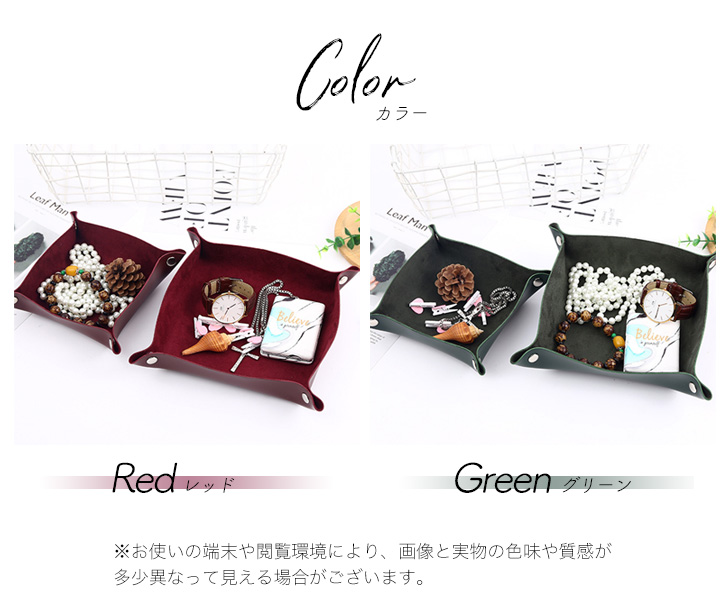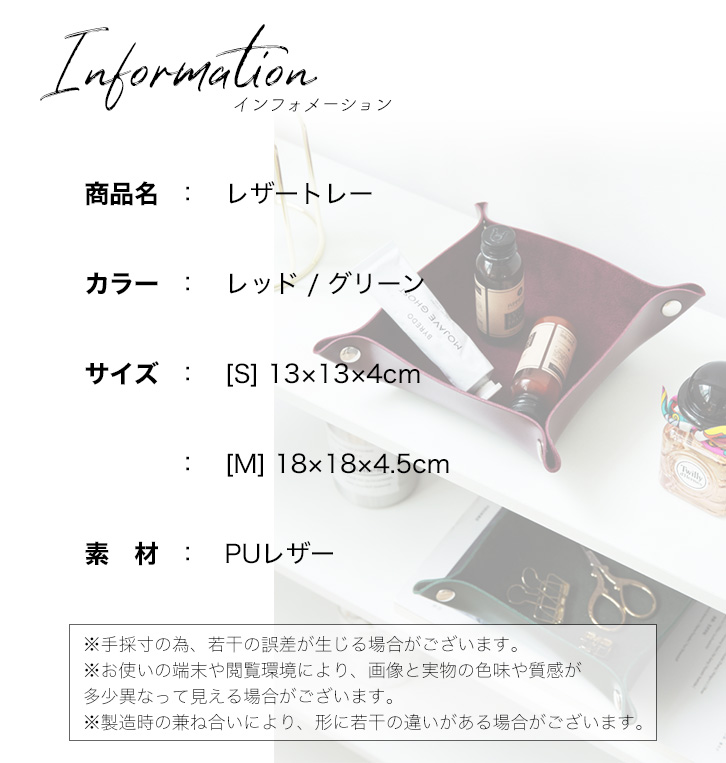 トレー 小物入れ レザートレー マルチトレー シンプル おしゃれ スタイリッシュ 2セット 同色2セット Sサイズ Mサイズ シンプル 見せる収納 インテリア PUレザー スナップボタン レッド グリーン 小物収納 マルチ 2個セット
