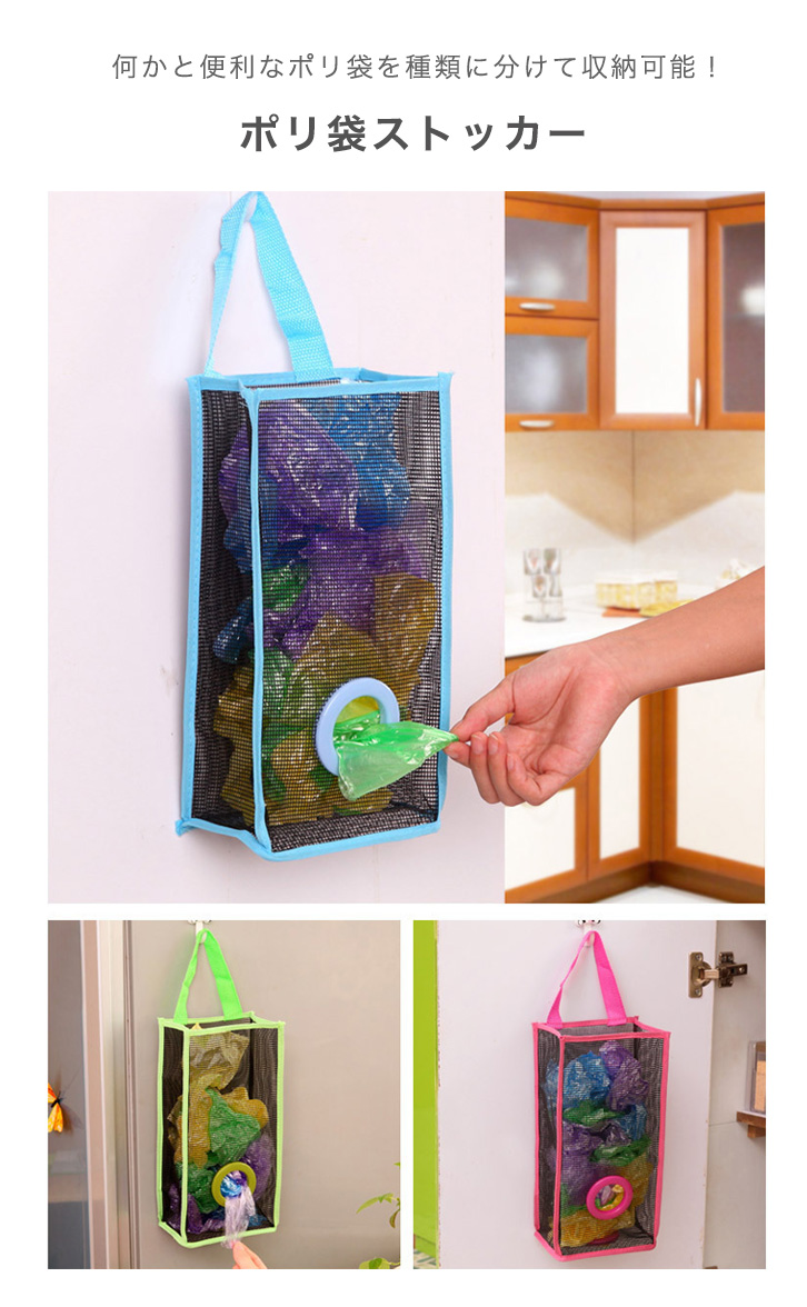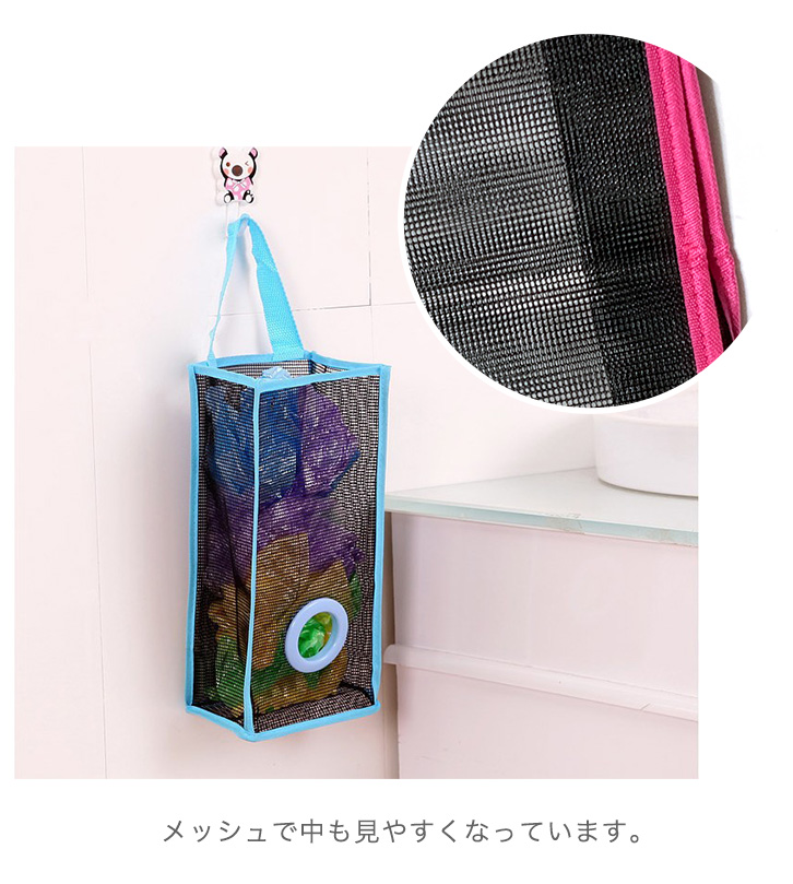 ストッカー ポリ袋ストッカー ポリ袋 レジ袋 レジ袋入れ ビニール袋 便利 すっきり 収納 整理整頓 メッシュ素材 見やすい ブルー ライムグリーン ピンク おしゃれ 使いやすい 実用的 レジ袋ストッカー キッチン雑貨 キッチングッズ