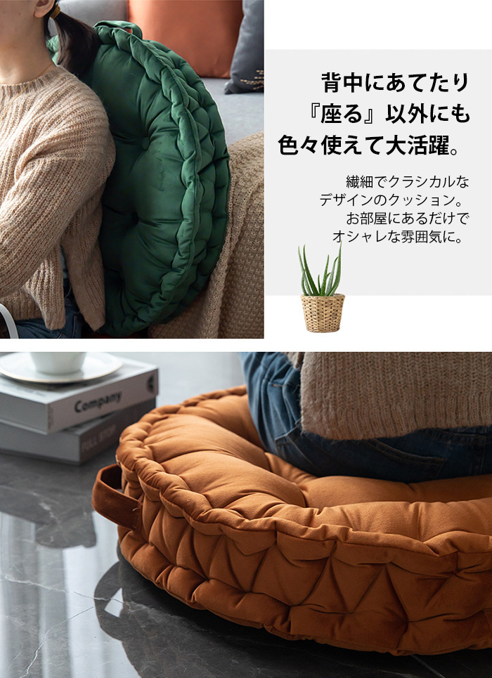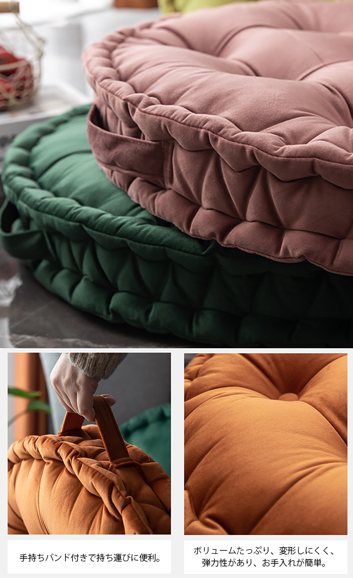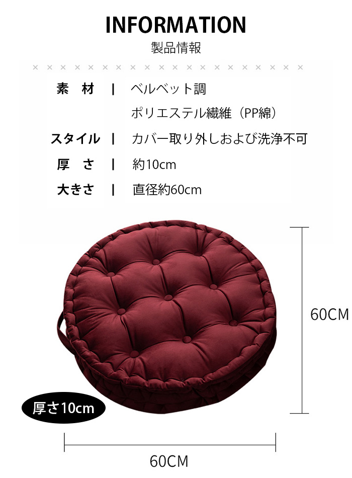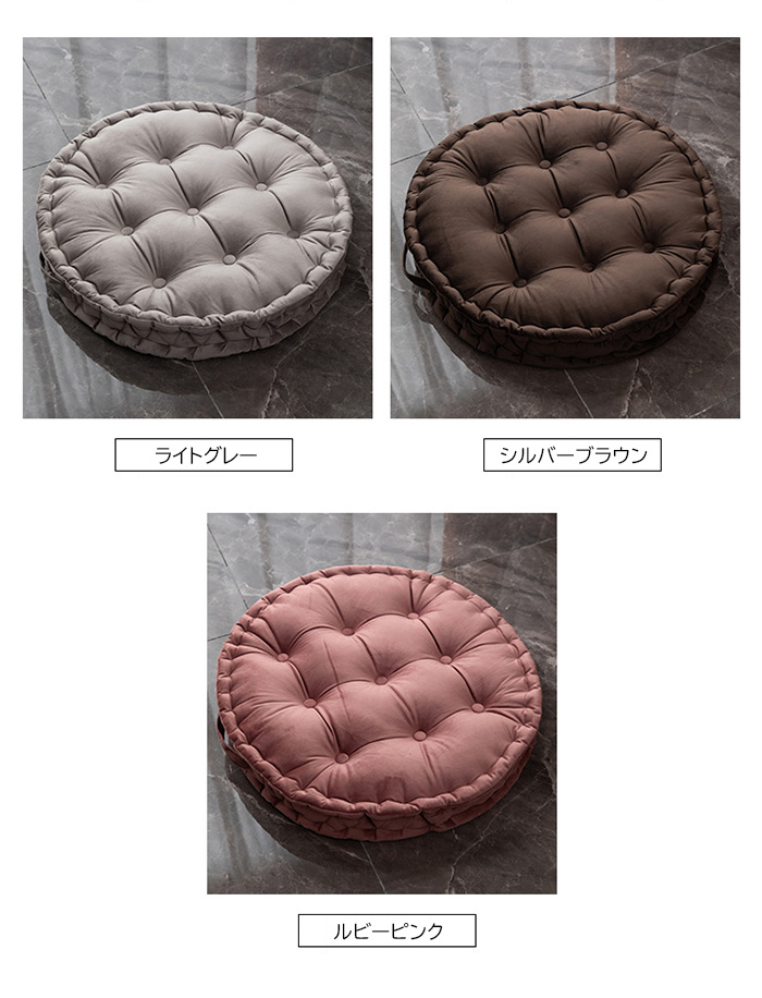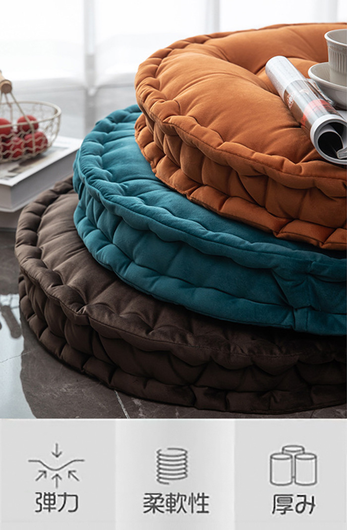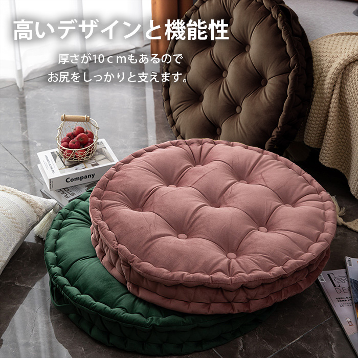クッション フロアクッション ラウンドクッション 丸型 座布団 背もたれ 大きい 直径60cm おしゃれ カラー豊富 インテリア かわいい ベルベット 厚さ10cm 大判クッション 無地 カラーバリエーション豊富 リビング 寝室 円形 丸い 和室 畳