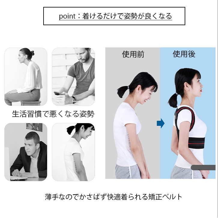 猫背矯正ベルト 猫背 猫背矯正 矯正 姿勢矯正 矯正ベルト ベルト 姿勢 背筋のばし 背筋 美姿勢 男性 女性 肩こり対策 腰痛対策 薄手 伸縮性 装着簡単