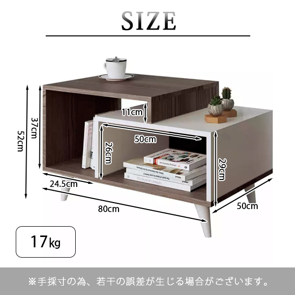 テーブル センターテーブル ローテーブル リビングテーブル おしゃれ ナチュラル モダン バイカラー シンプル 収納棚付き 多機能 幅80cm 高さ52cm 奥行50cm リビング 寝室 一人暮らし ワンルーム