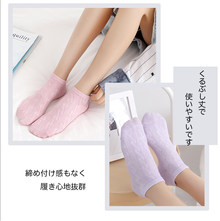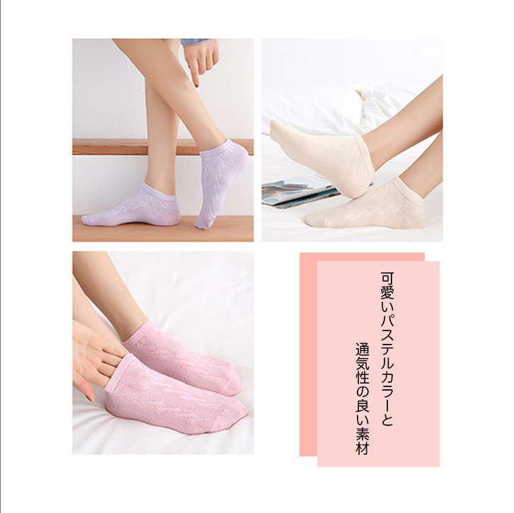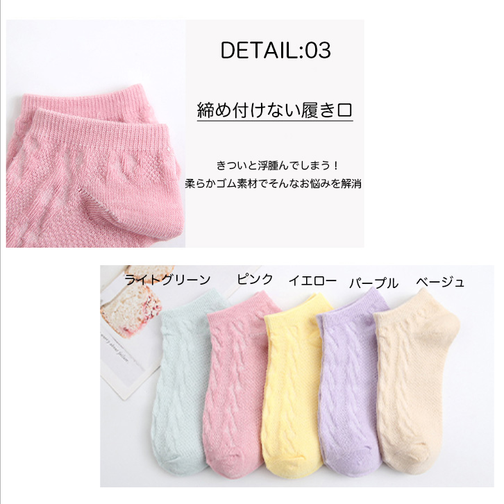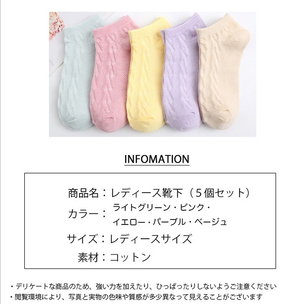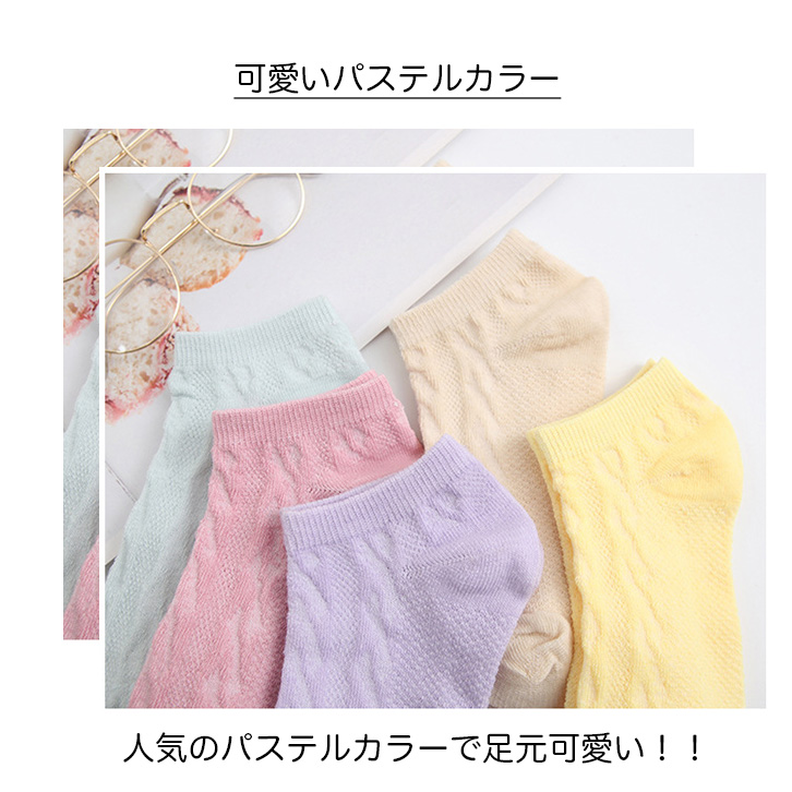 靴下 ソックス レディース くるぶし丈 パステルカラー 編み込み風 通気性抜群 5足1セット シンプル 無地 かわいい 丈夫 スニーカー コットン おしゃれ デイリー 洗い替え 履き心地抜群 カジュアル