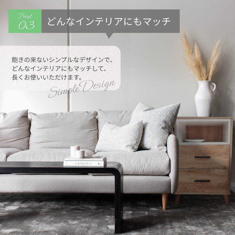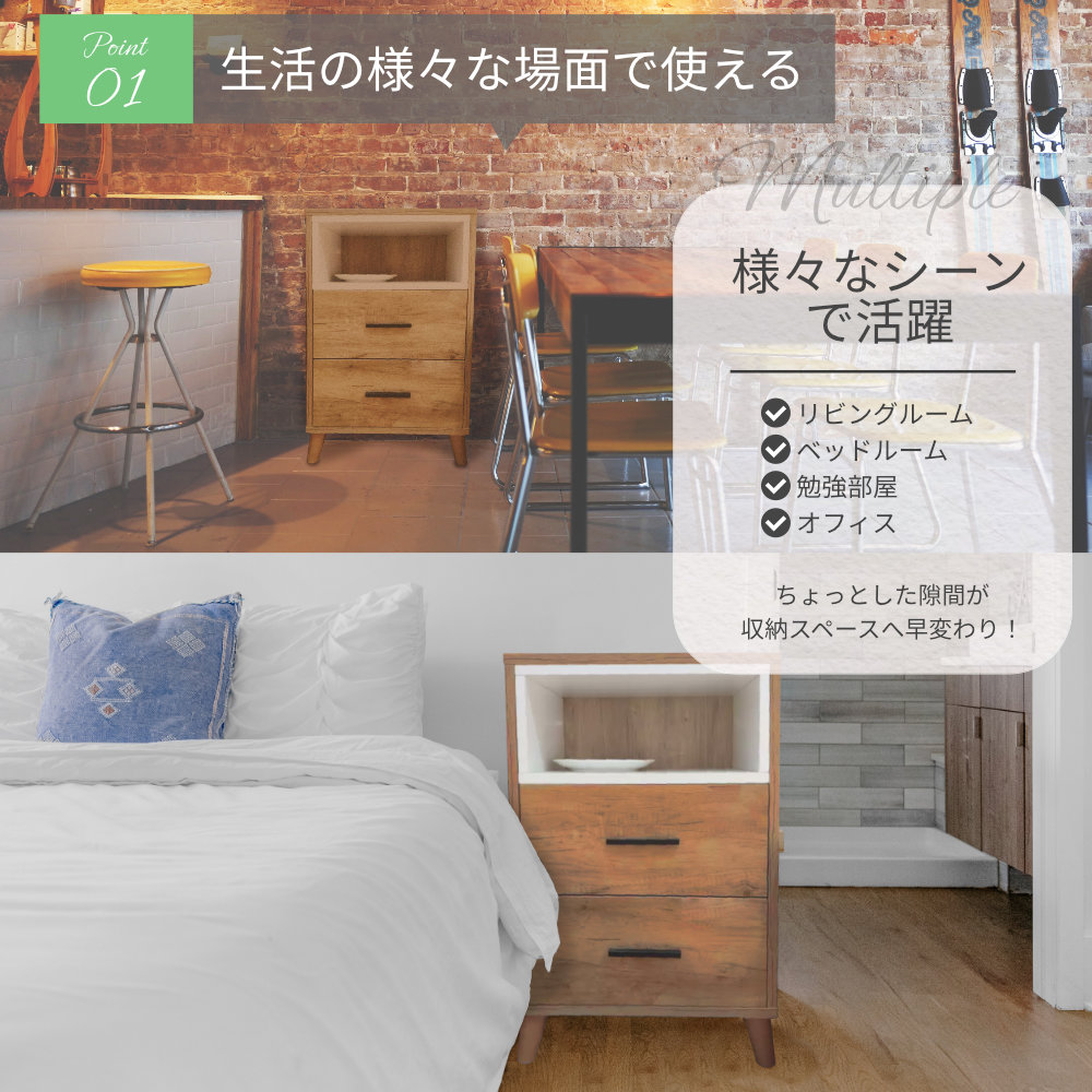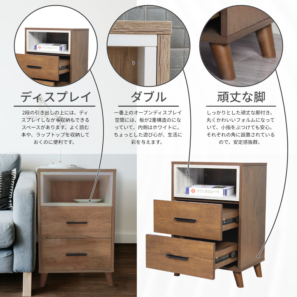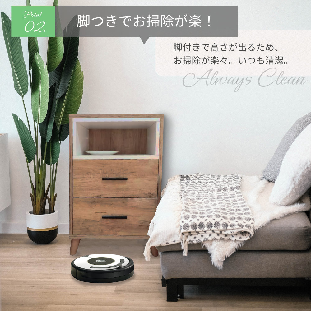 2つの引き出し付きですっきりと生活感を隠すことも。