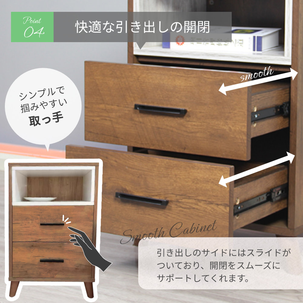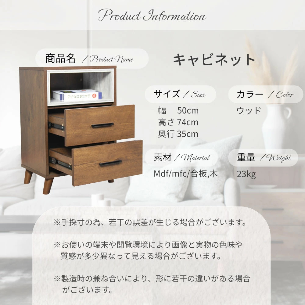 キャビネット シェルフ サイドボード 収納 引き出し付き 3段 シンプル ナチュラル リビング 寝室 収納力抜群 幅50cm スリム 省スペース スリムボード 奥行35cm 高さ74cm コンパクト 一人暮らし モダン