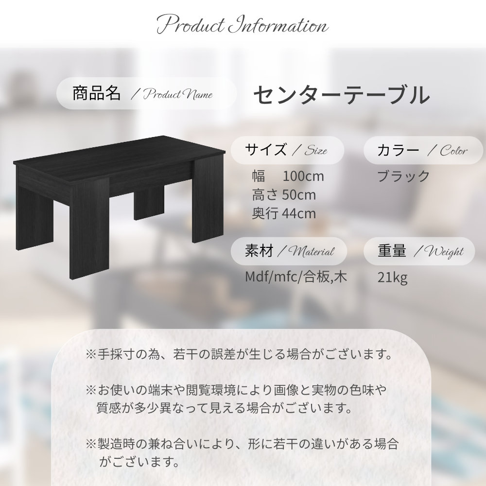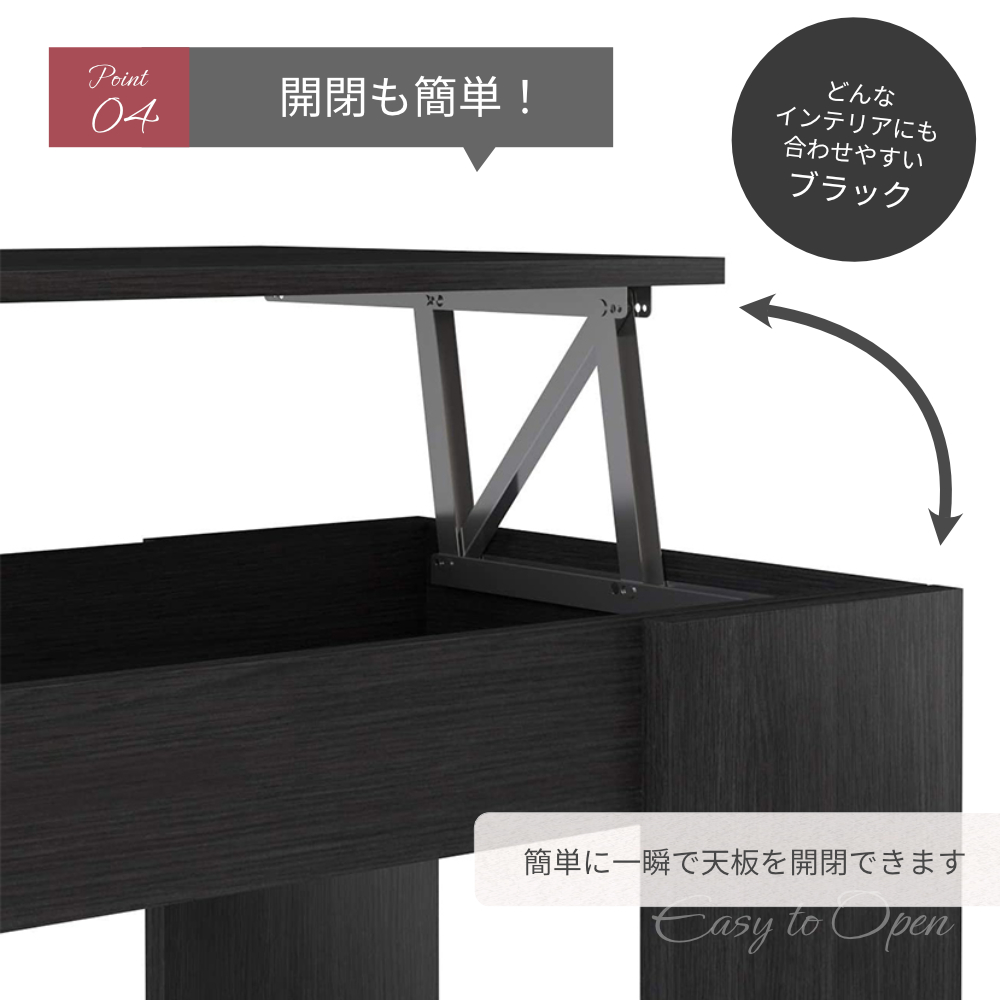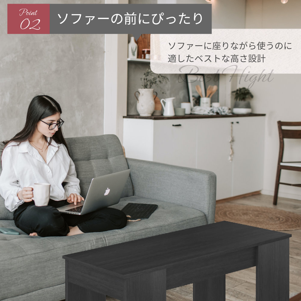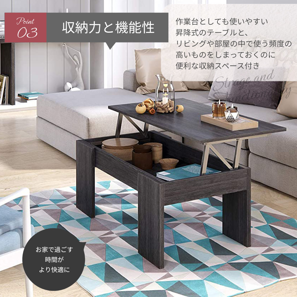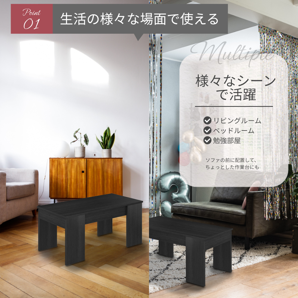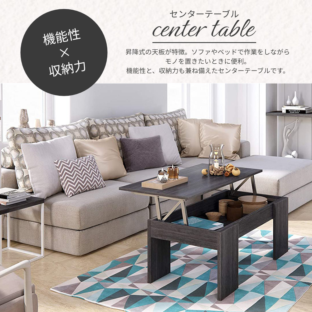 テーブル センターテーブル 昇降式 ローテーブル 収納 ブラック モダン スタイリッシュ 幅100cm 長方形 シンプル リビングテーブル リフトアップテーブル パソコンデスク テレワーク 在宅 高さ50cm 奥行44cm