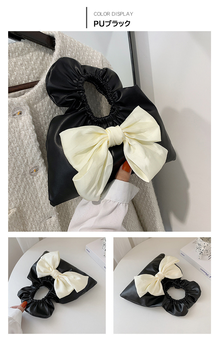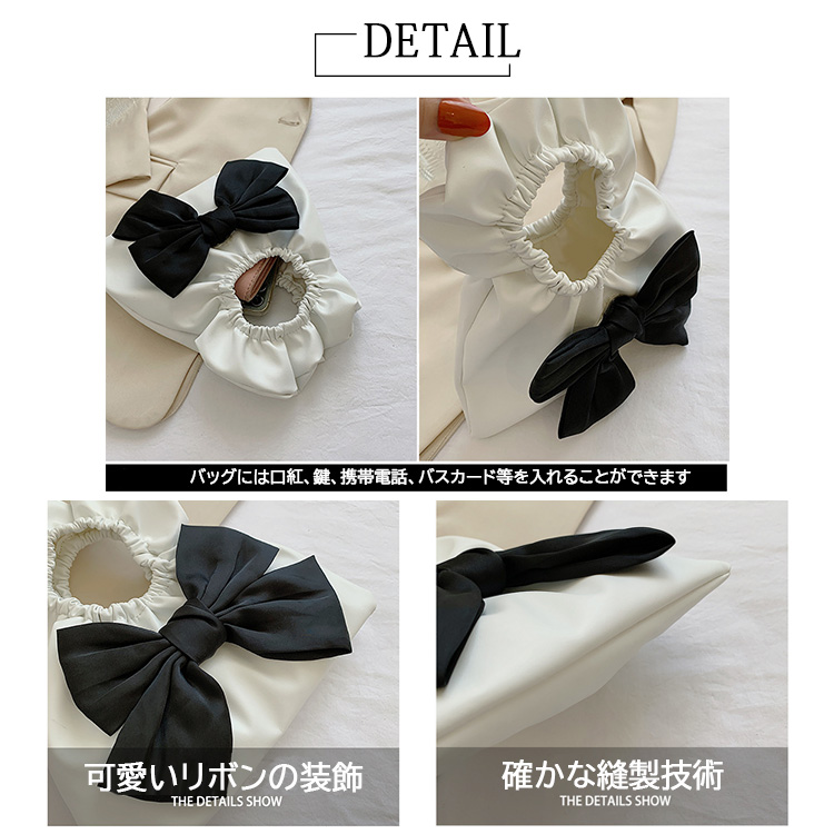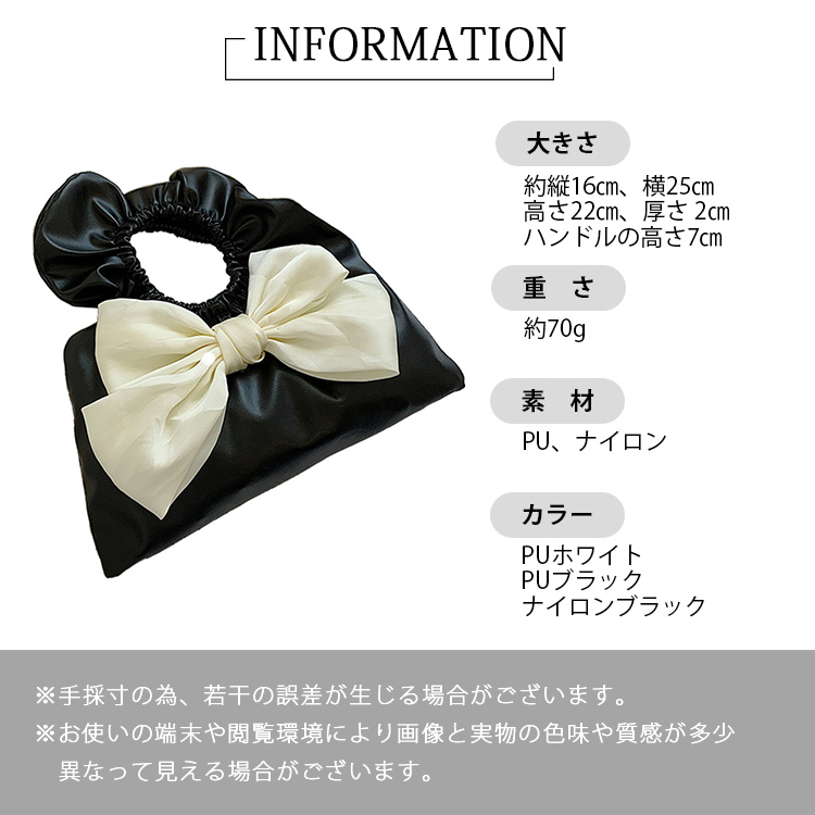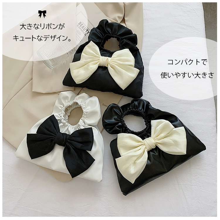 ハンドバッグ ミニ コンパクト リボン かわいい フェミニン トート 大人カジュアル 小さめ 手提げ 軽量 レディース 女性 プレゼント ギフト ブラック ホワイト モノトーン