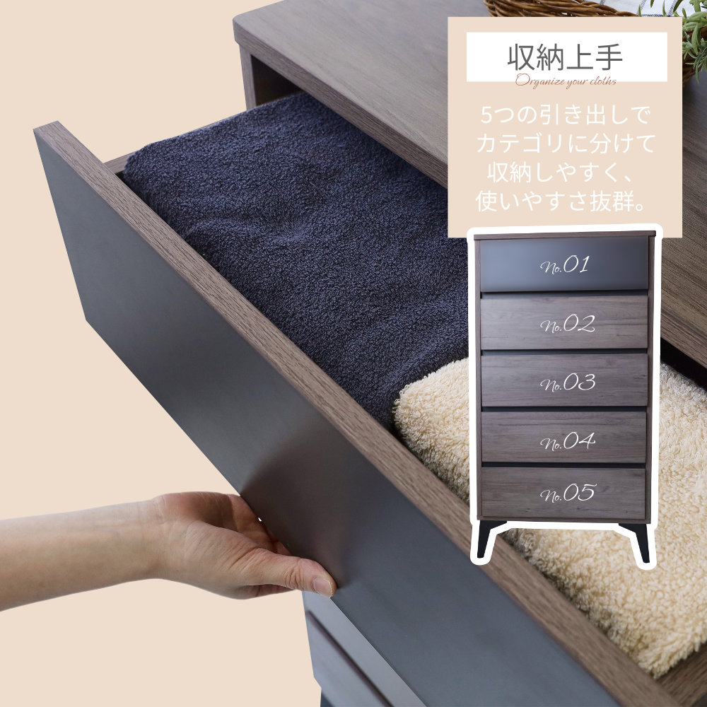 キャビネット チェスト 収納 スリム 5段 モダン シック 収納棚 衣類収納 脚付き