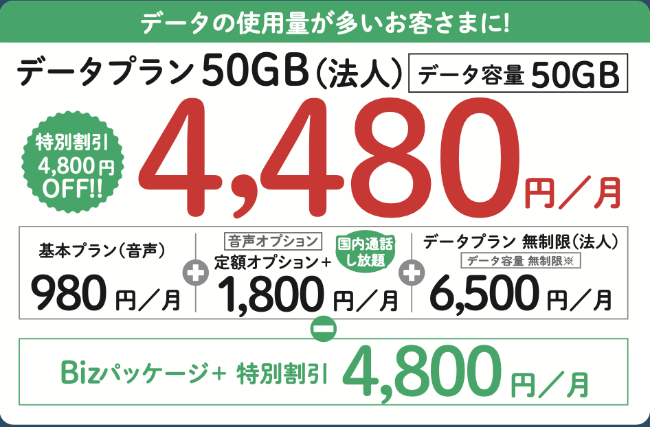 法人・みなし法人限定プラン 噂のスマホ 特典付き申込窓口問合せ