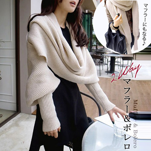 マフラー ボレロ マフラーボレロ 2way ニットマフラー ニットボレロ アレンジ自在 ストールボレロ ニットストール ポンチョ風 レディース おしゃれ シンプル ボレロマフラー あったかい 寒さ対策 オシャレ メンズ 男女兼用 ユニセックス
