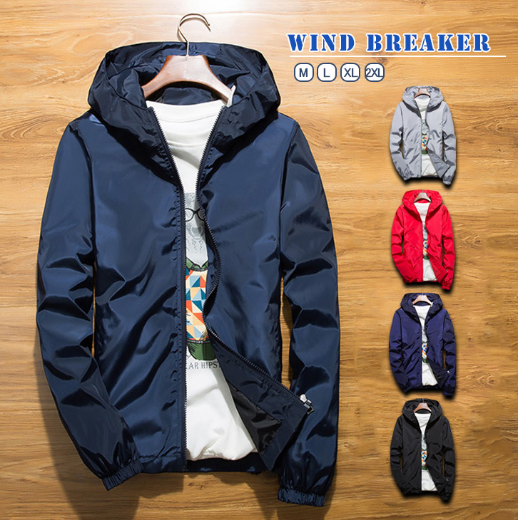 ウインドブレーカー メンズ レディース スポーツウエア 無地ウインドブレーカー シンプル スタイリッシュ サイドポケット レッド グレー ネイビー ブラック ハイフード アウトドア