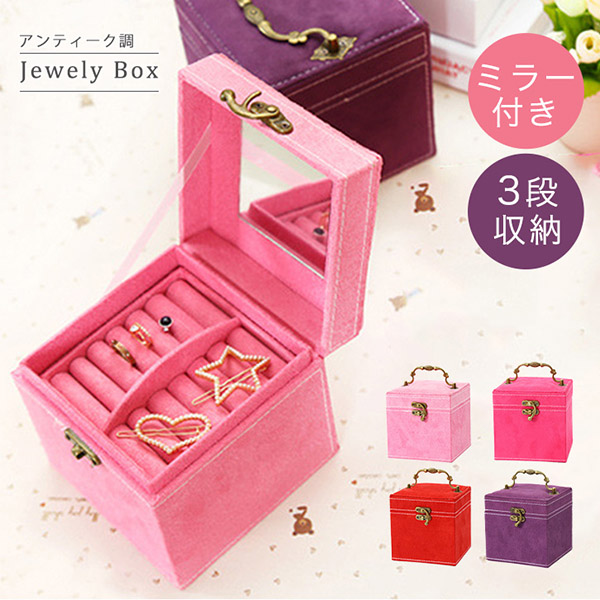 アクセサリーボックス ジュエリーボックス 収納ボックス アクセサリー収納 ジュエリー収納 ミラー付き アンティーク 3段収納 大容量 コンパクト 収納力抜群 クッション付き リング ピアス イヤリング 小物 ブレスレット ネックレス