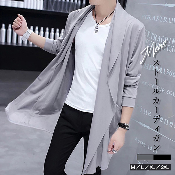 カーディガン メンズカーディガン メンズ ストールカーディガン 羽織り 春 秋 シンプル 着回し抜群 合わせやすい きれいめ カジュアル 変形シルエット 細身 ホワイト ブラック おしゃれ ストール風 ドレープ ポケット付き