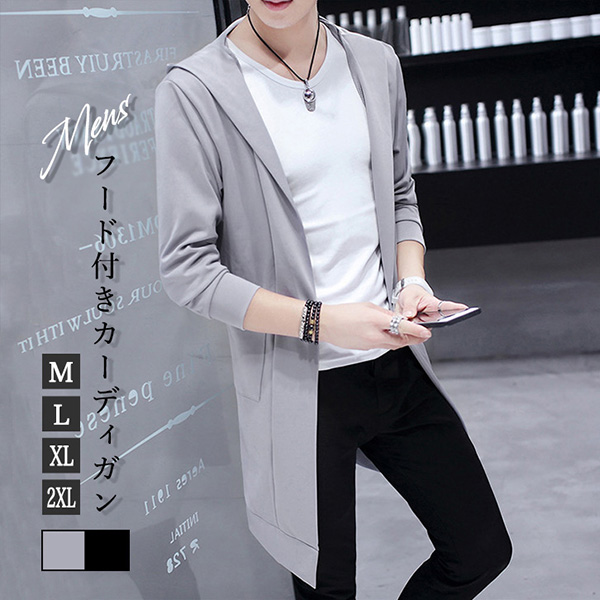 カーディガン メンズ カーデ メンズカーディガン 長袖 メンズカーデ フード付き 羽織り ベーシック カジュアル きれいめ 着回し抜群 シンプル 合わせやすい 着心地快適 伸縮性 変形シルエット 美シルエット 大人カジュアル ホワイト ブラック